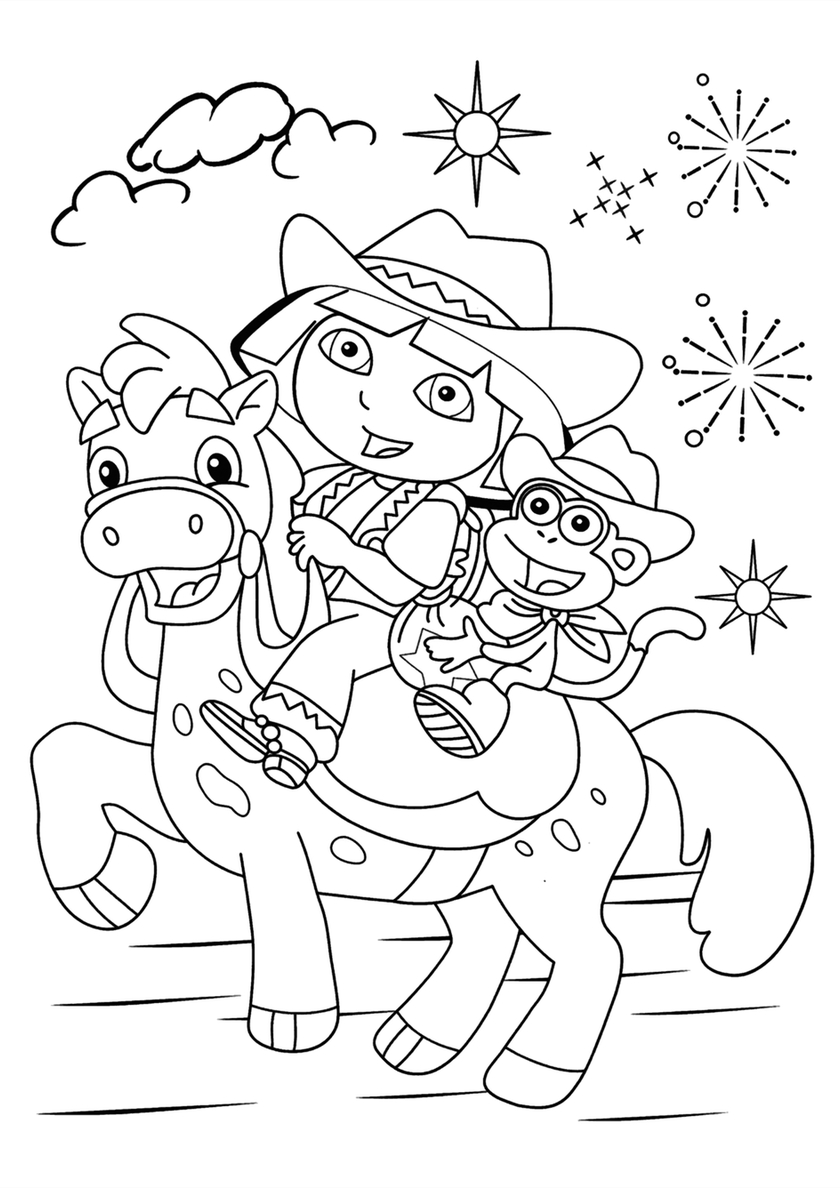 Даша верхом на лошади - Даша-путешественница бесплатная раскраска Даша верхом на лошади