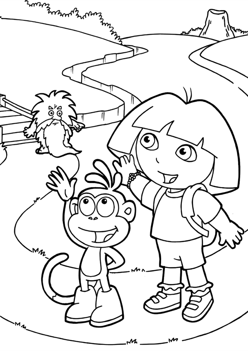 Путешествие Даши (Даша-путешественница) бесплатная раскраска на печать Путешествие Даши