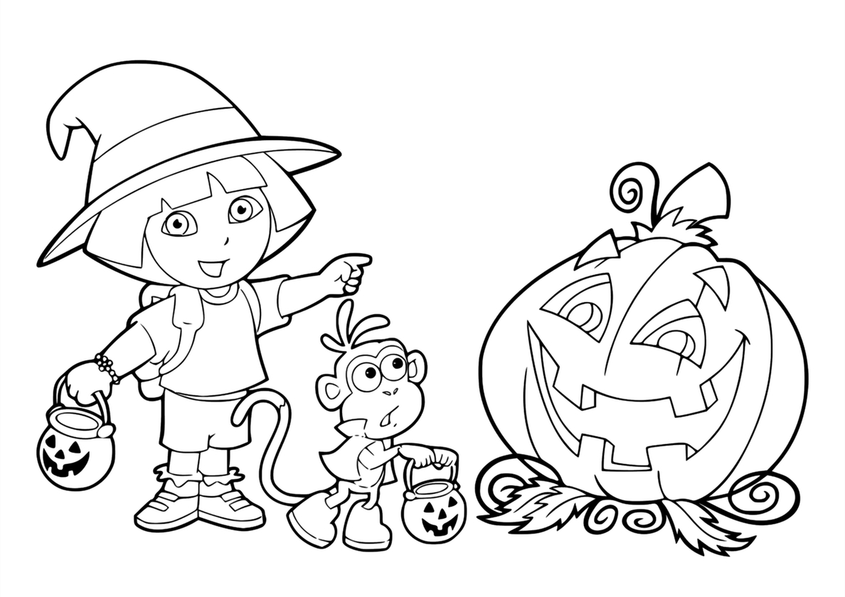 Даша-путешественница бесплатная раскраска - Даша и Башмачок на Хэллоуин Даша и Башмачок на Хэллоуин