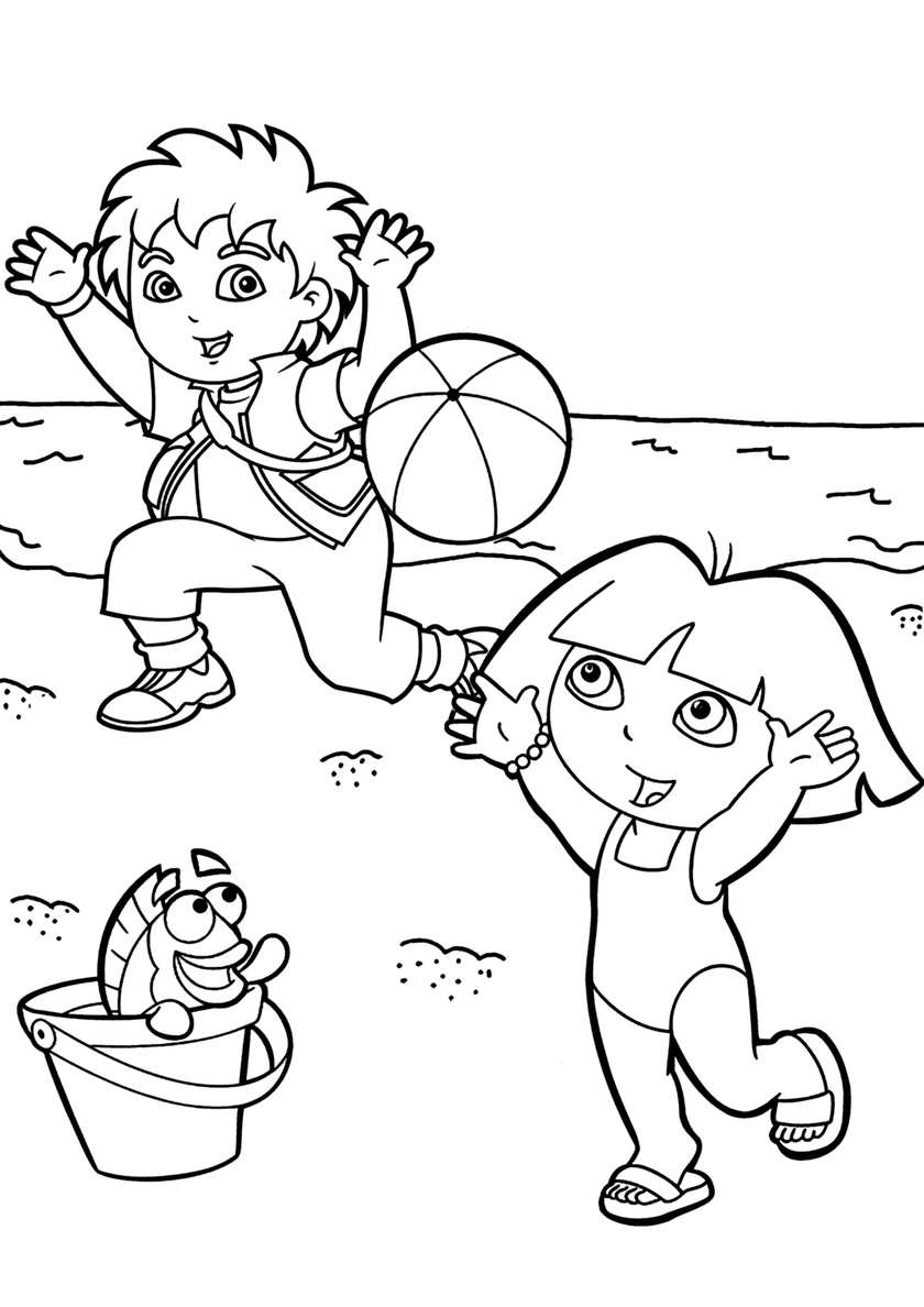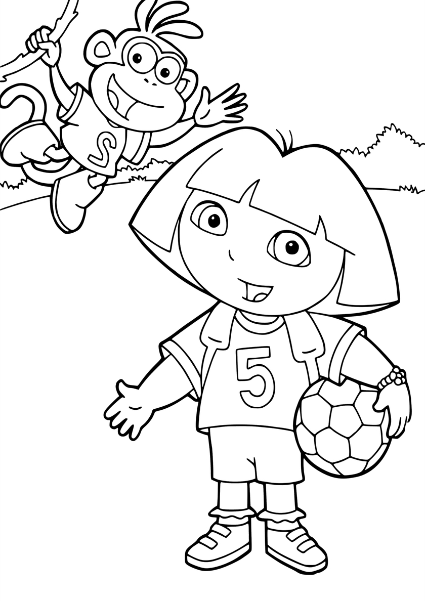 Даша и Диего играют в мяч разукрашка скачать и распечатать - Даша-путешественница Даша и Диего играют в мяч