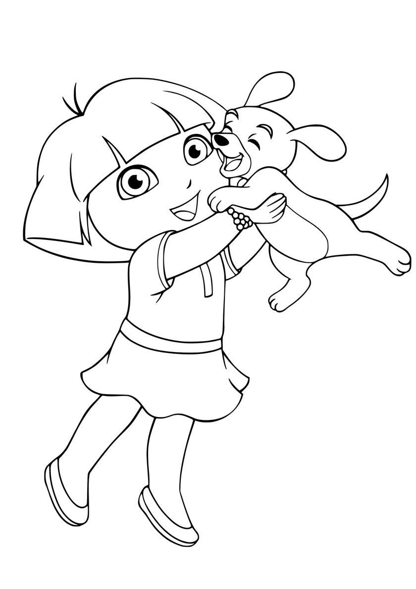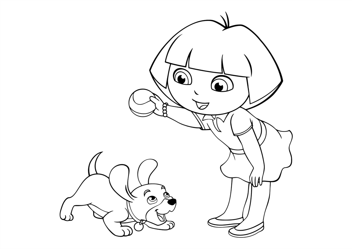 Даша играет с собачкой бесплатная раскраска - Даша-путешественница Даша играет с собачкой
