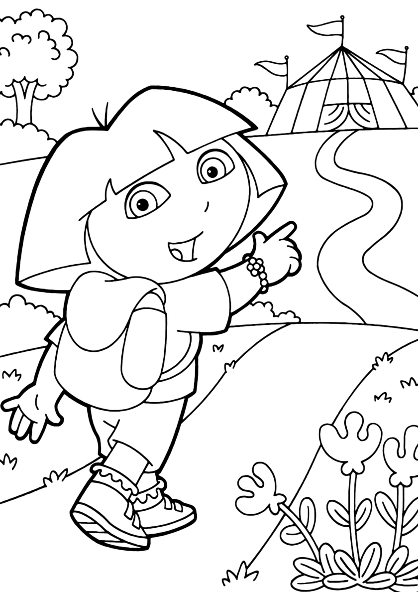 Раскраска Даша идет к палатке распечатать на А4 - Даша-путешественница Даша идет к палатке