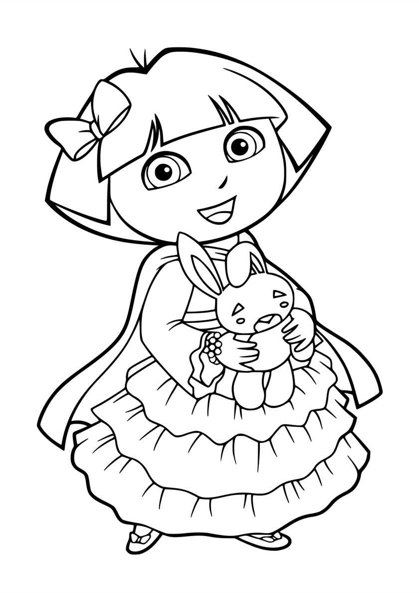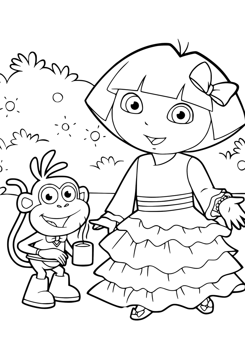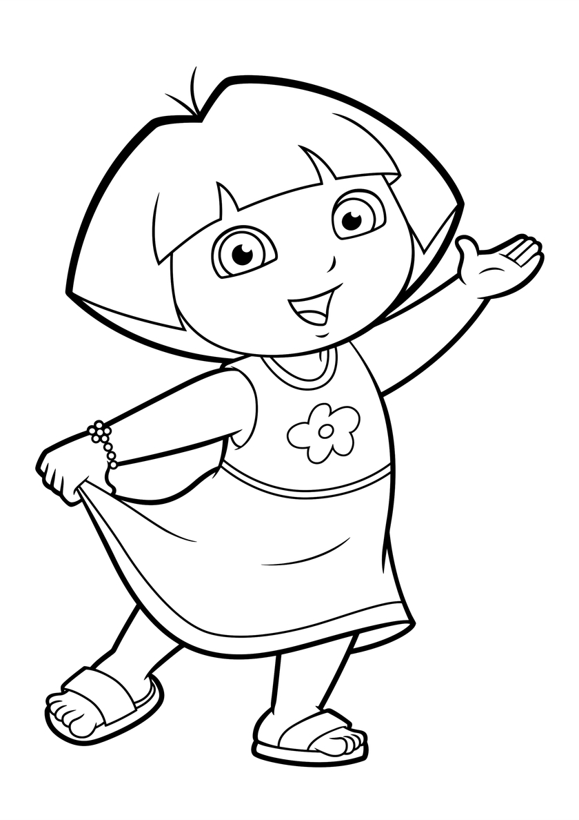 Раскраска Даша Путешественница в милом платье распечатать на А4 - Даша-путешественница Даша Путешественница в милом платье