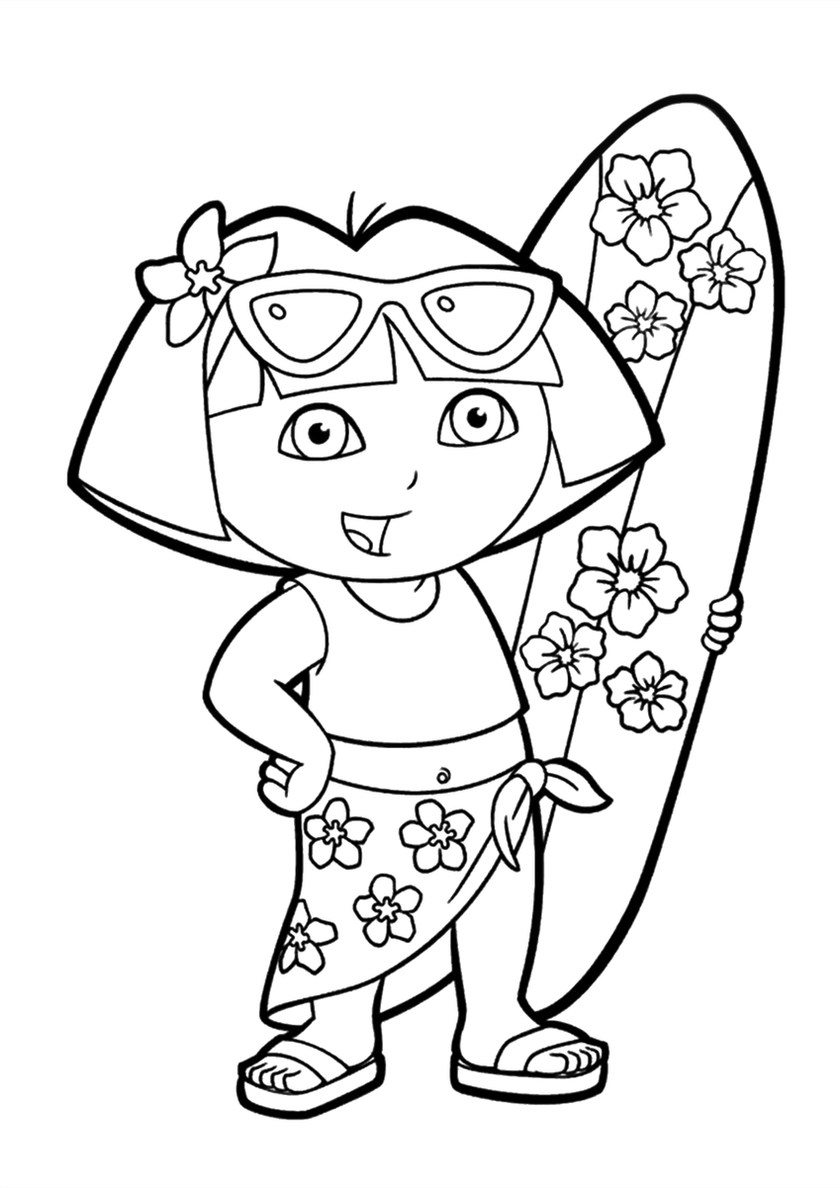 Даша с доской для серфинга распечатать и скачать раскраску - Даша-путешественница Даша с доской для серфинга