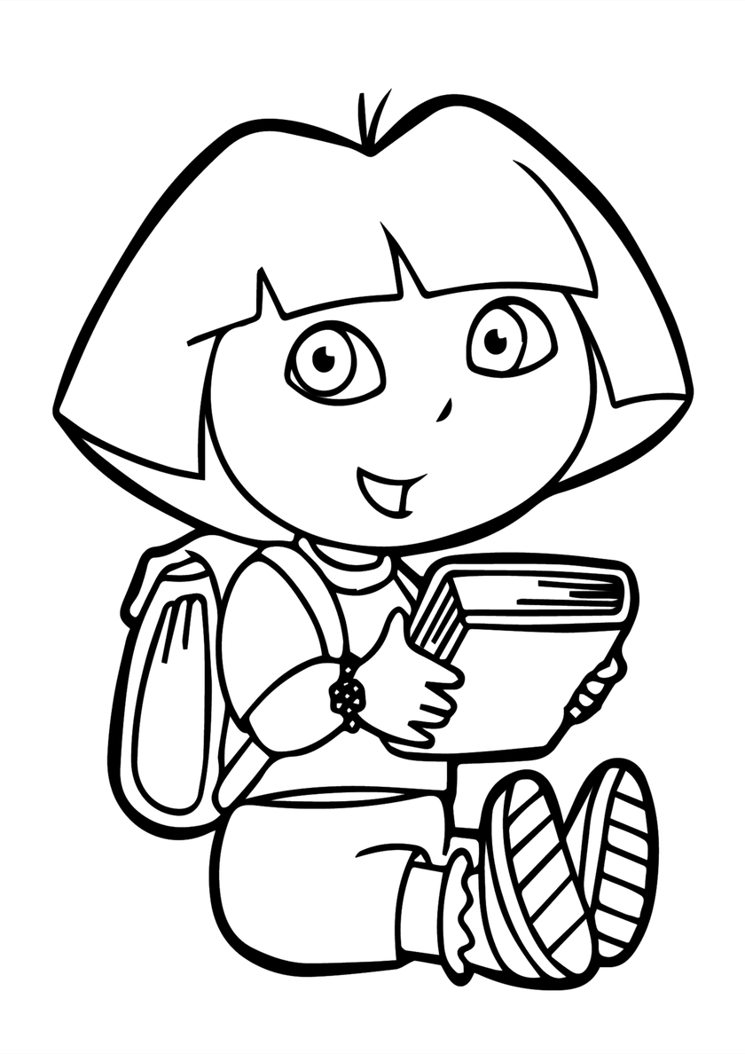 Даша с книжкой в руках распечатать и скачать раскраску - Даша-путешественница Даша с книжкой в руках