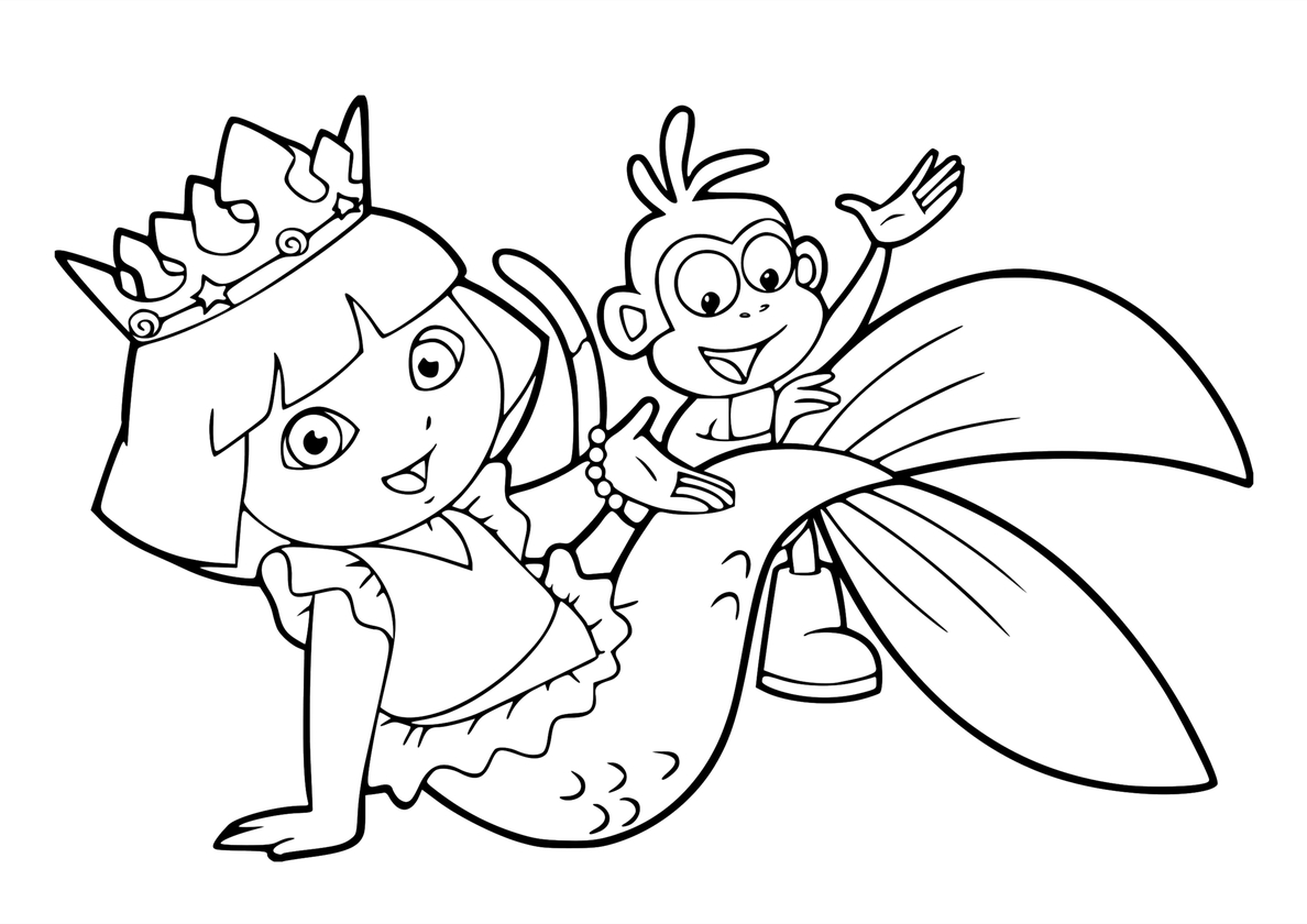 Даша с хвостом русалки (Даша-путешественница) бесплатная раскраска Даша с хвостом русалки