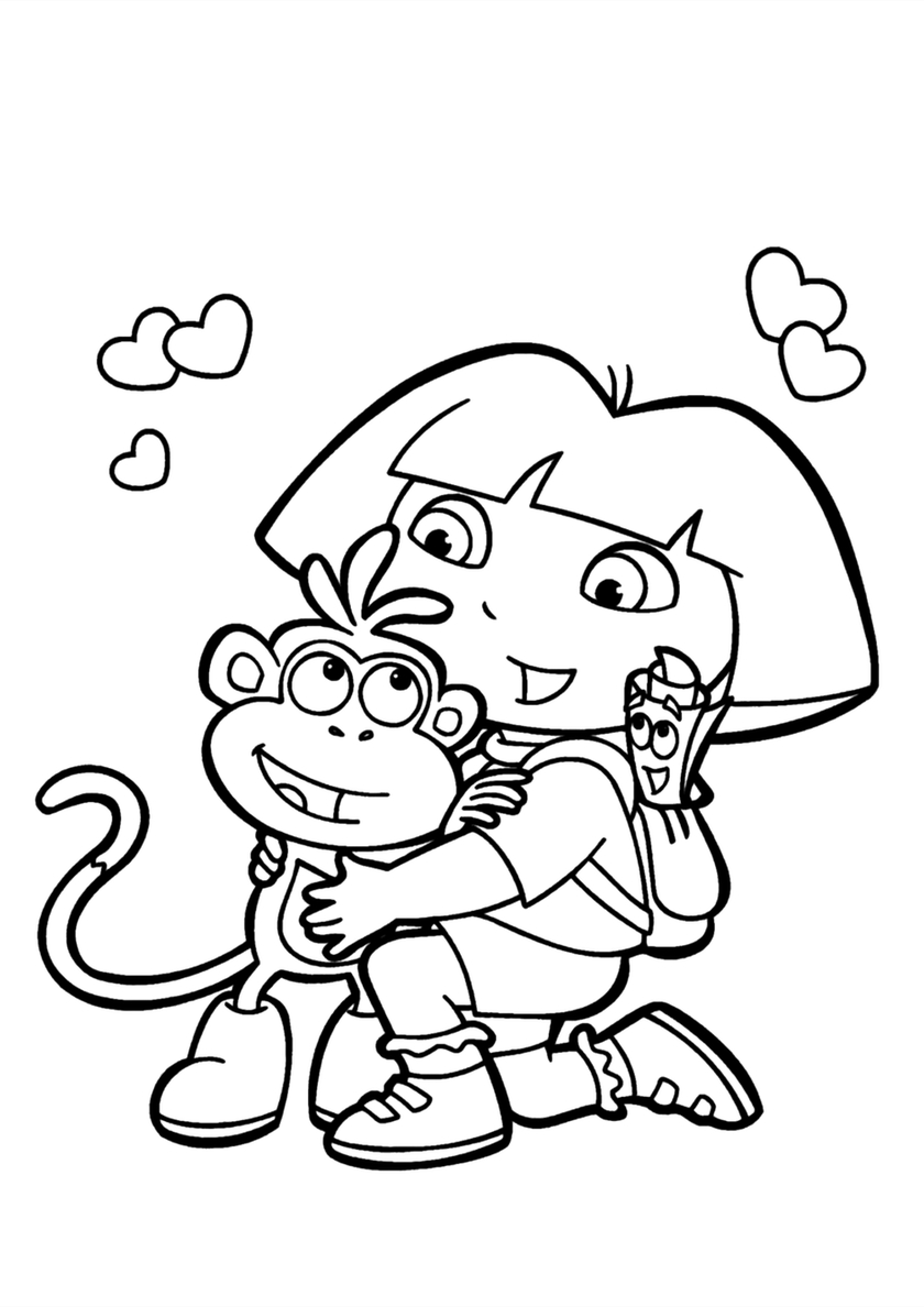 Раскраска Крепкие объятия Даши и Башмачка распечатать на А4 и скачать - Даша-путешественница Крепкие объятия Даши и Башмачка
