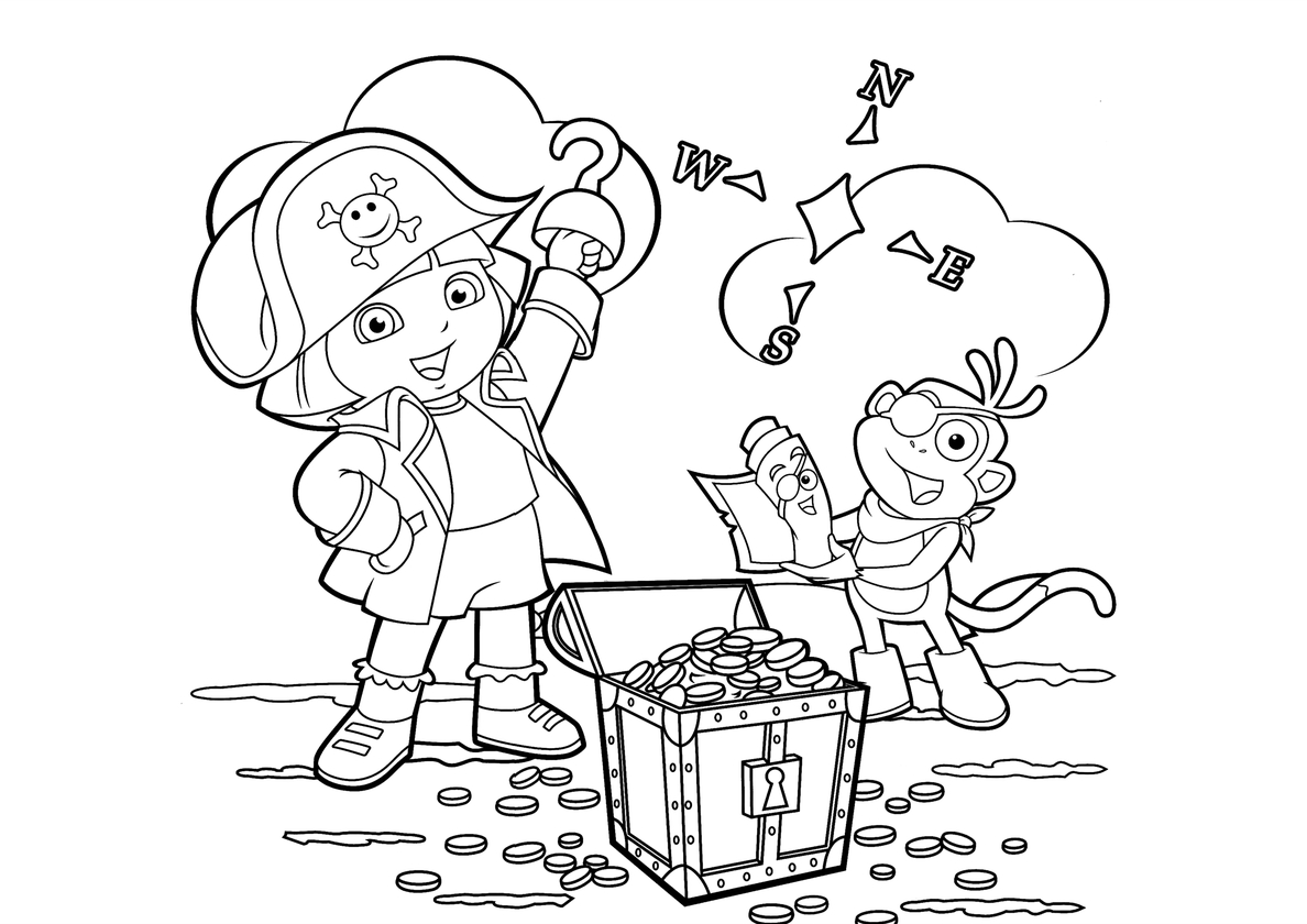 Пиратские сокровища раскраска распечатать и скачать - Даша-путешественница Пиратские сокровища
