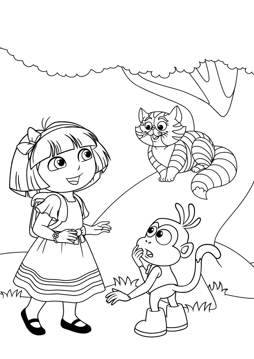 Раскраска Разговор с Чеширским котом распечатать на А4 и скачать - Даша-путешественница Разговор с Чеширским котом