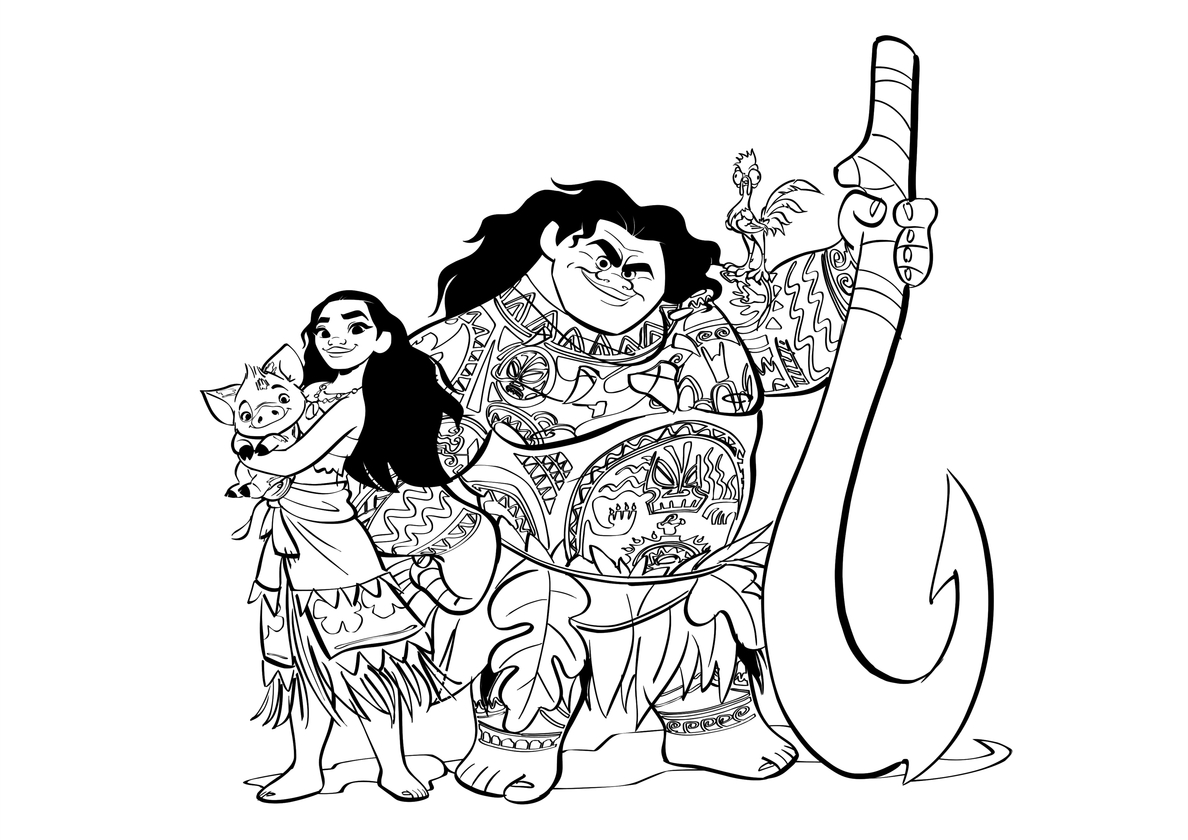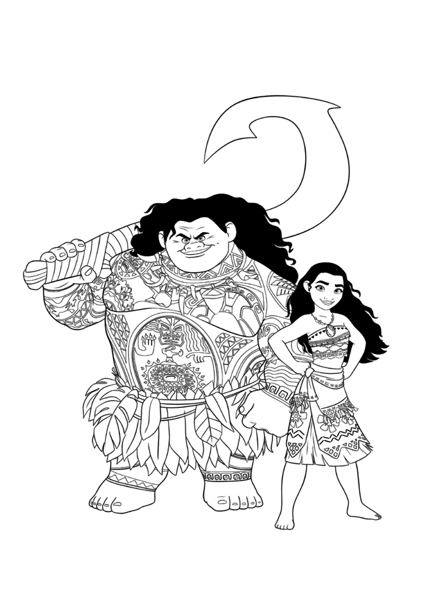 Моана и полубог Мауи разукрашка скачать и распечатать - Моана Моана и полубог Мауи