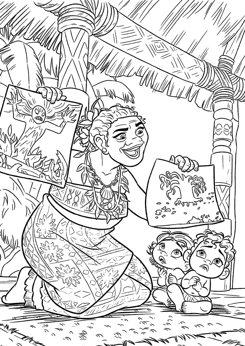 Жуткие истории бабушки Талы - Моана распечатать раскраску на А4 Жуткие истории бабушки Талы
