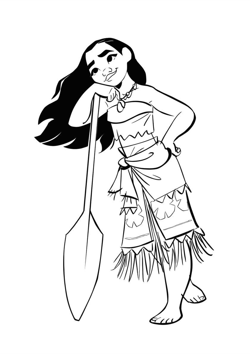 Бесплатная раскраска Моана опирается на весло - Моана Моана опирается на весло
