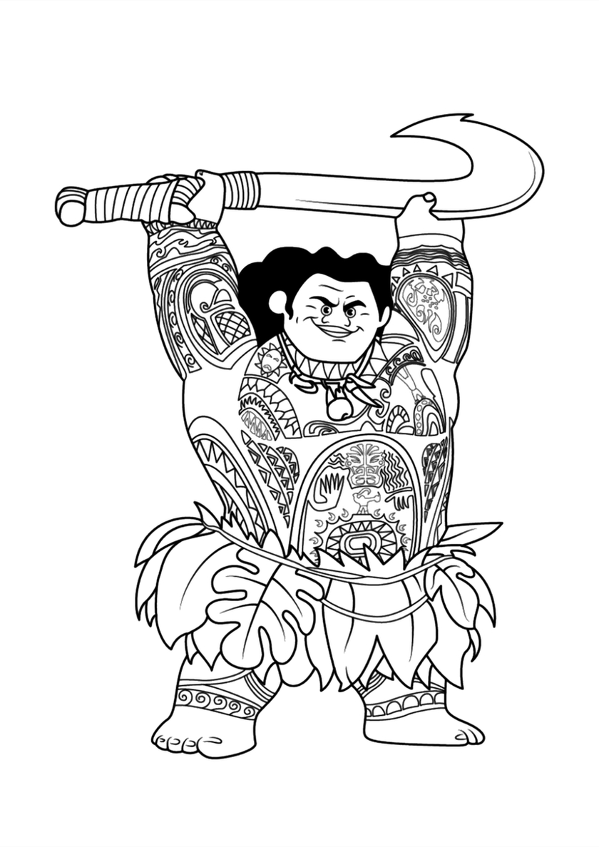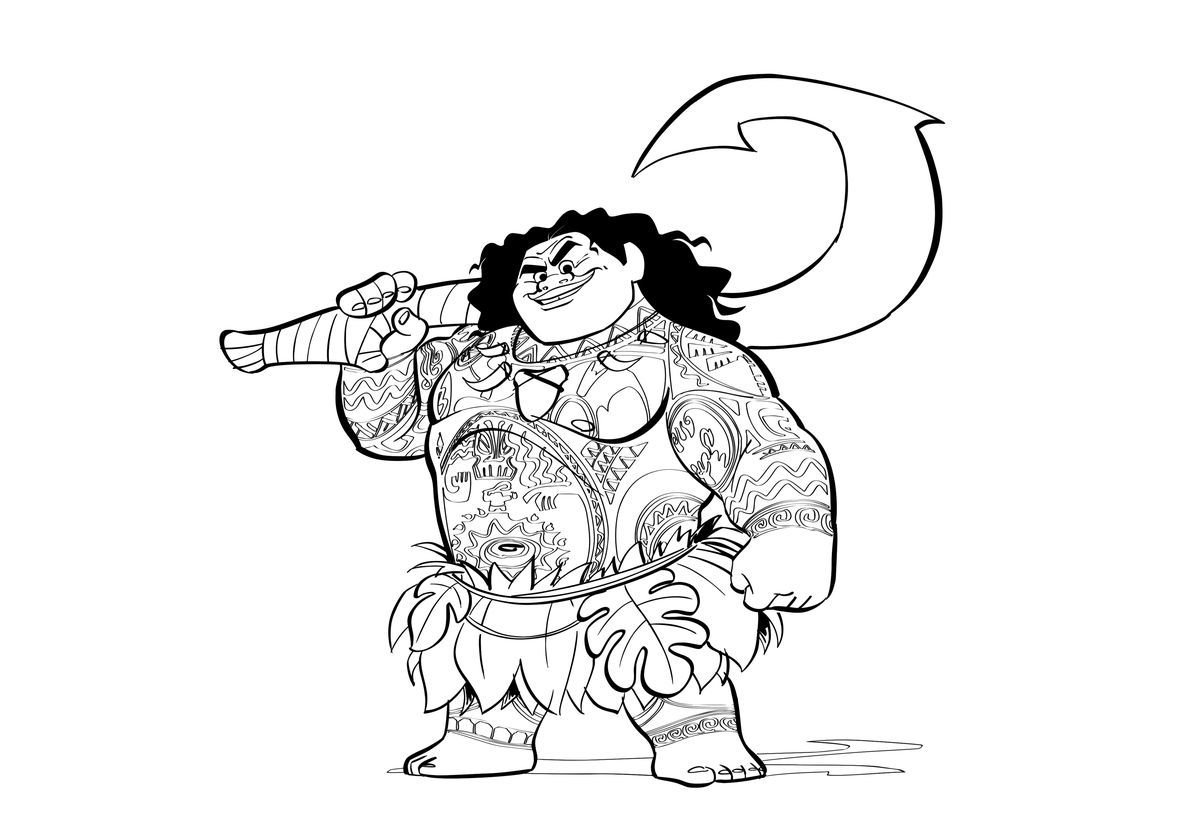 Полубог Мауи (Моана) раскраска для печати и загрузки Полубог Мауи