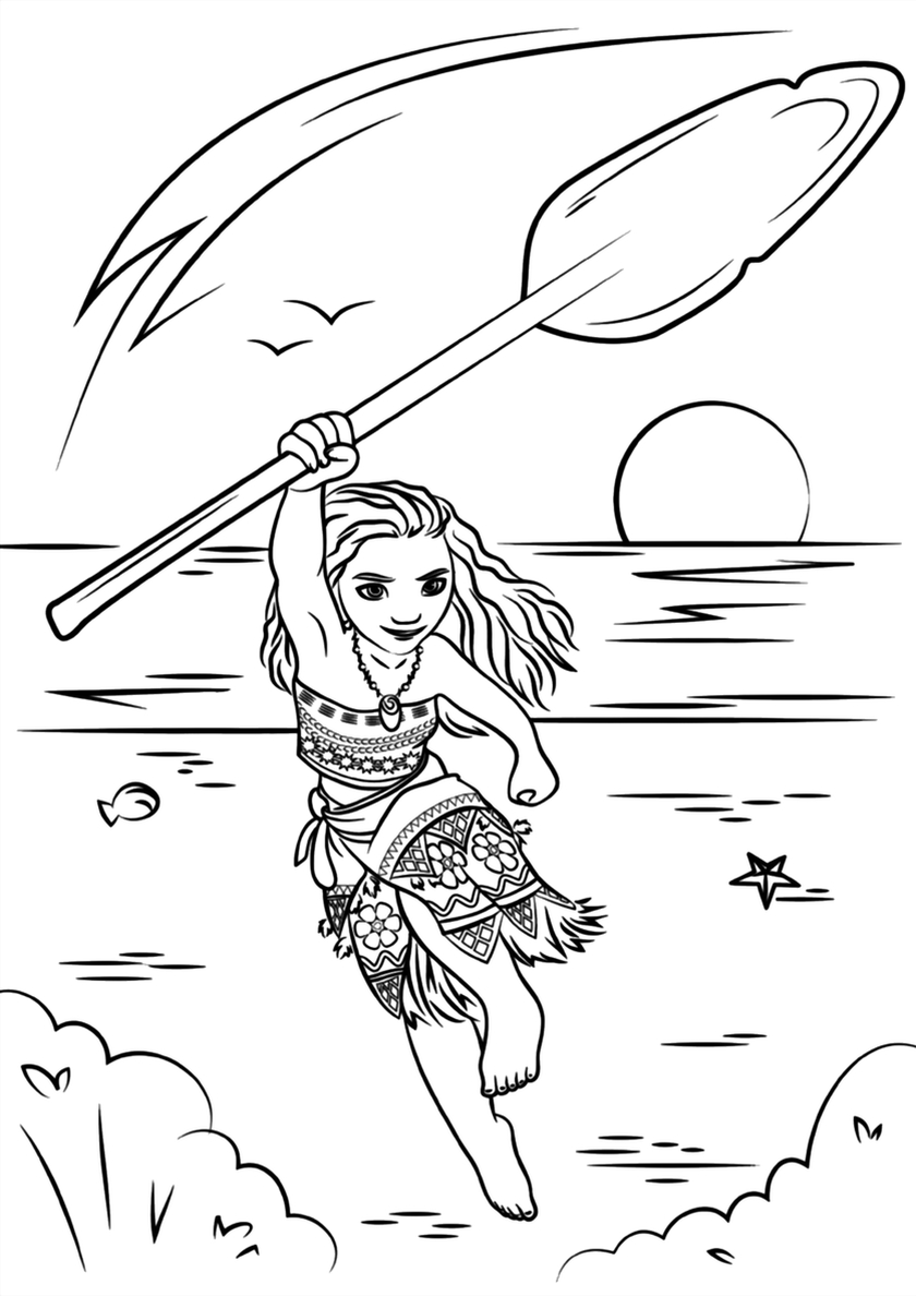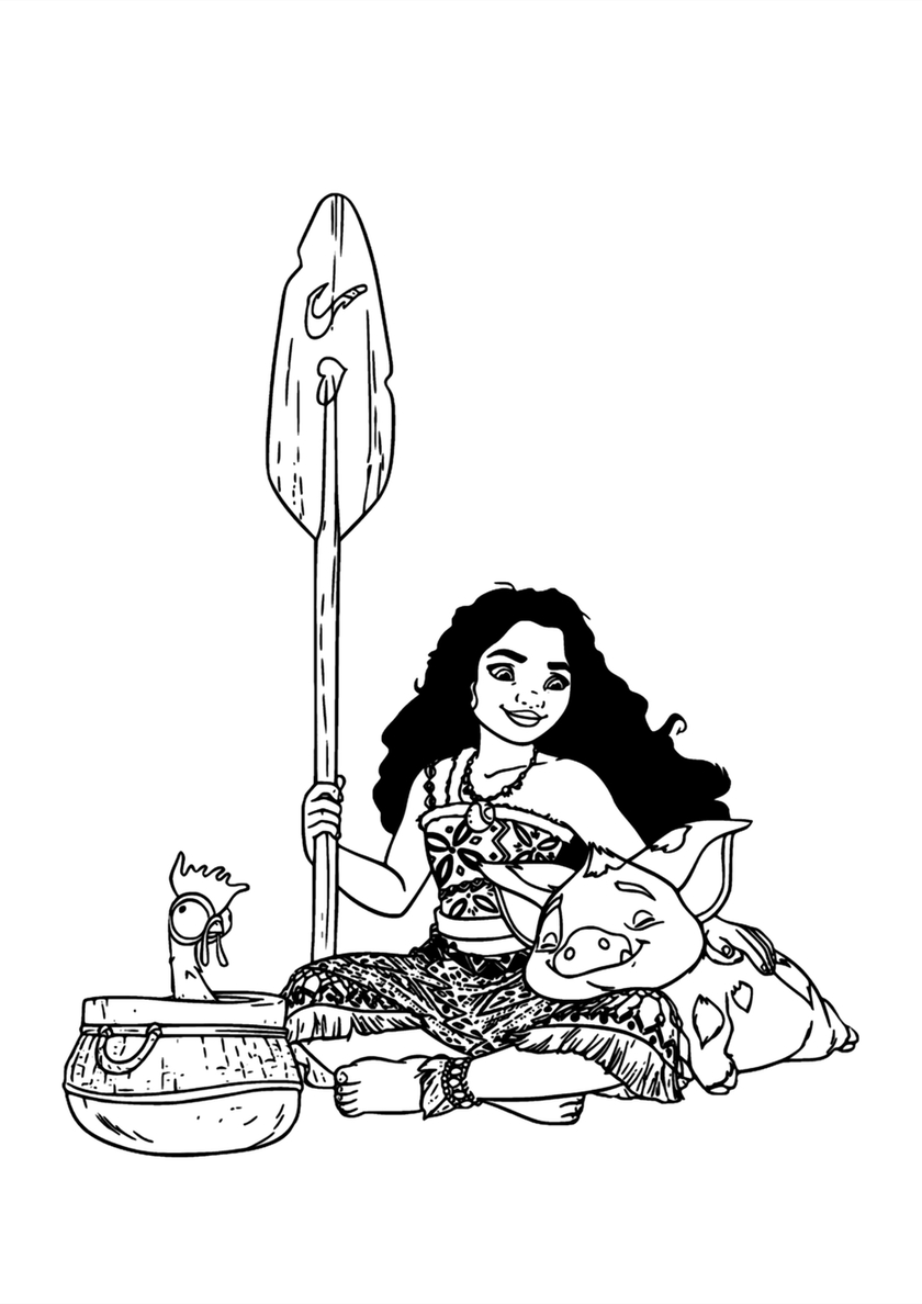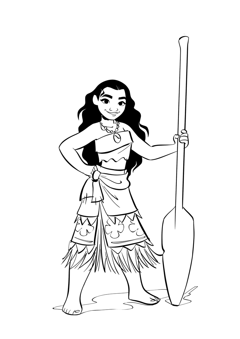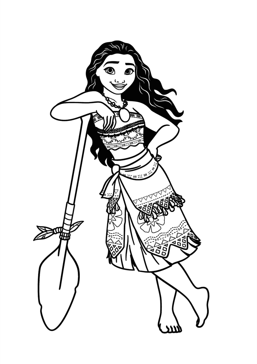 Моана распечатать раскраску - Моана с веслом Моана с веслом