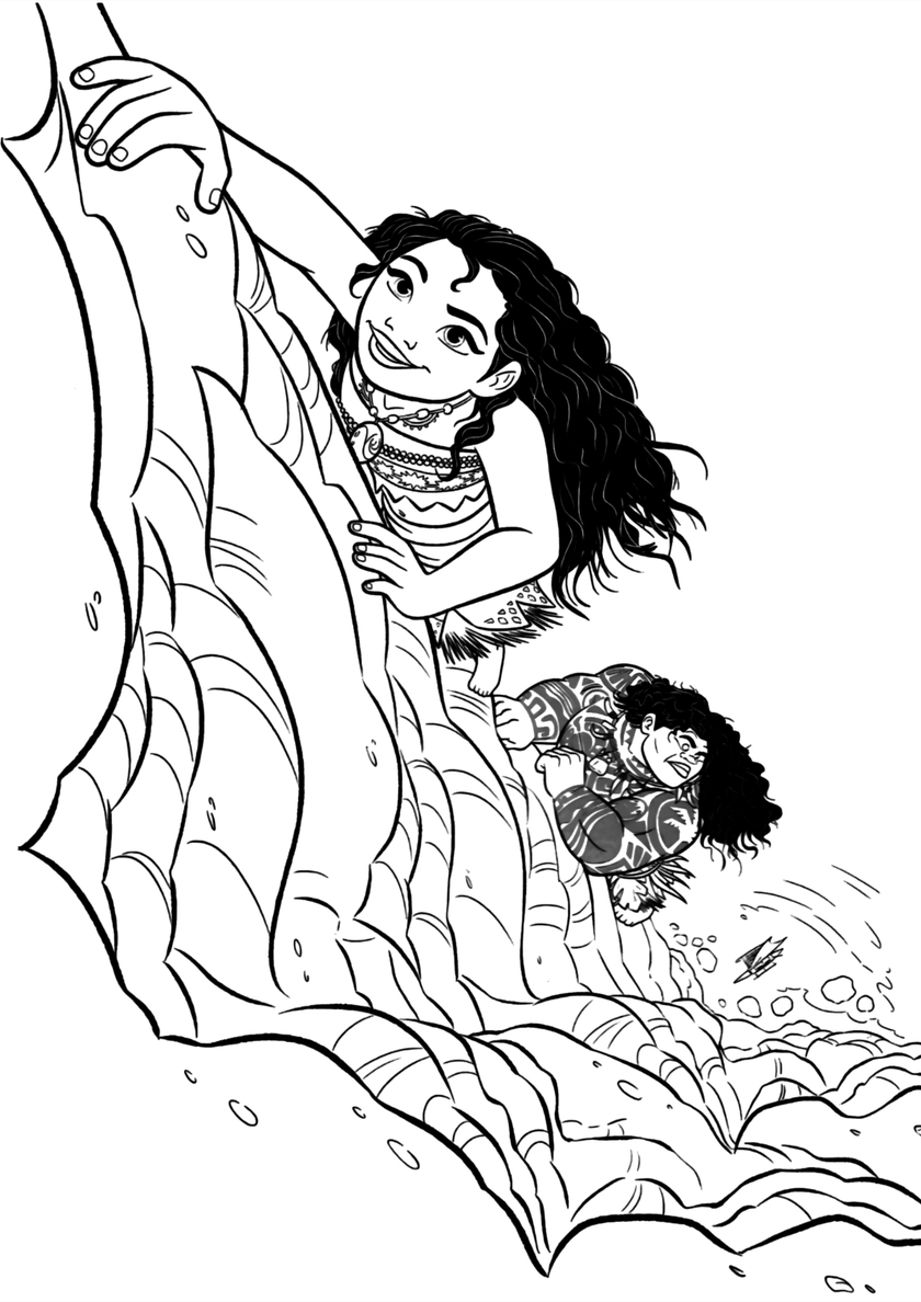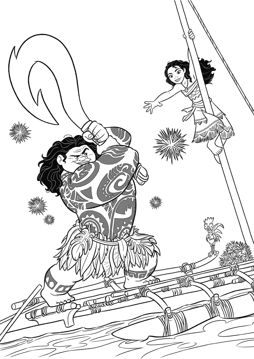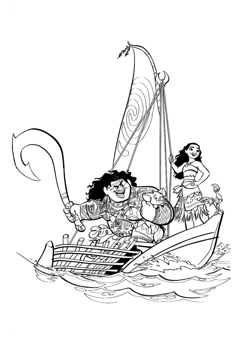 Путешествие Моаны и Мауи раскраска распечатать и скачать - Моана Путешествие Моаны и Мауи