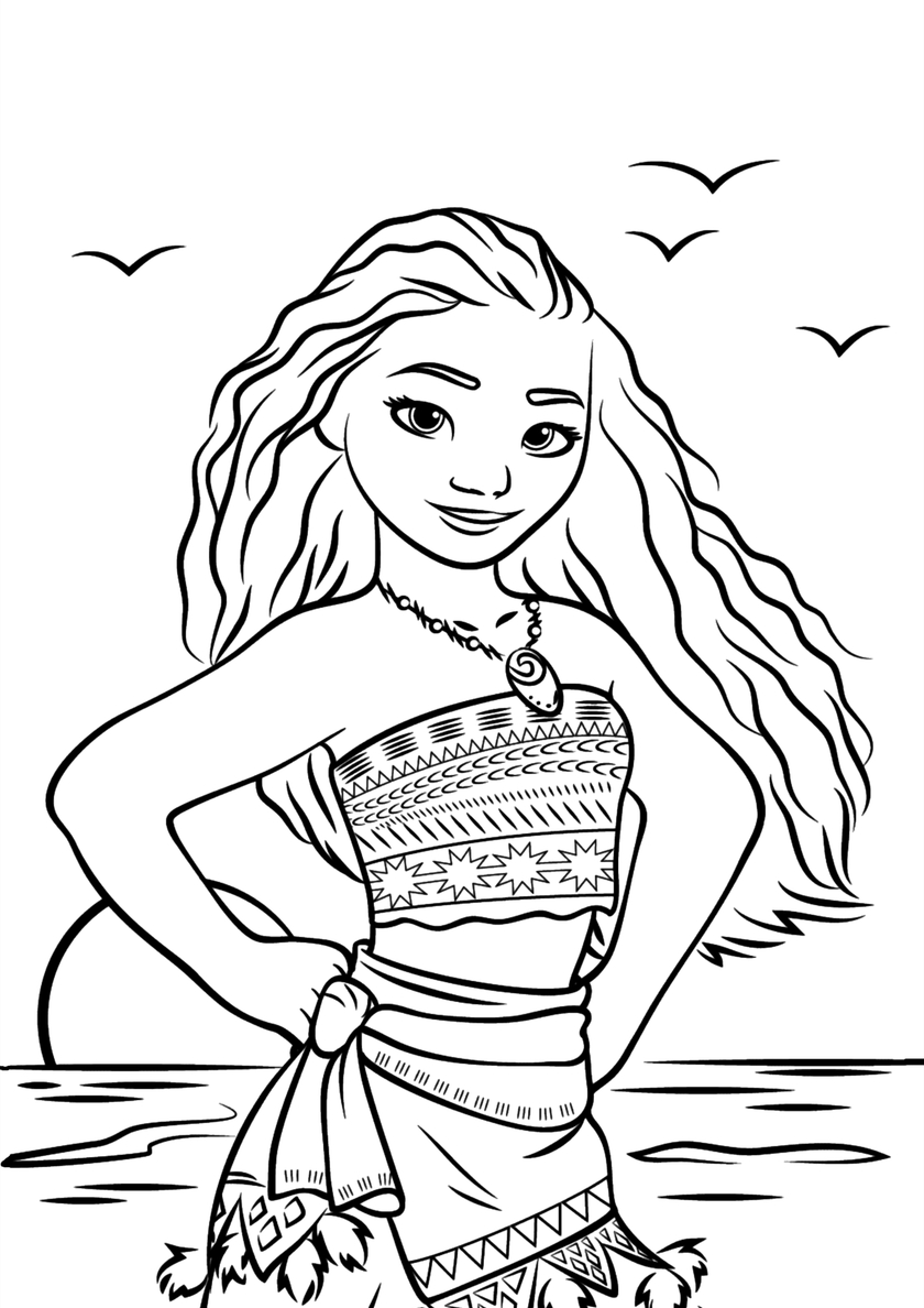 Моана бесплатная разукрашка - Целеустремленная Моана Целеустремленная Моана