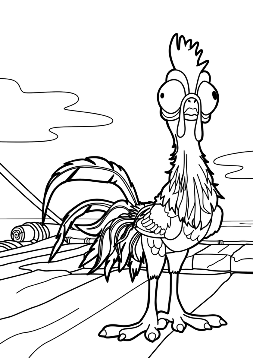 Моана распечатать раскраску - Растерянный Хей-Хей Растерянный Хей-Хей