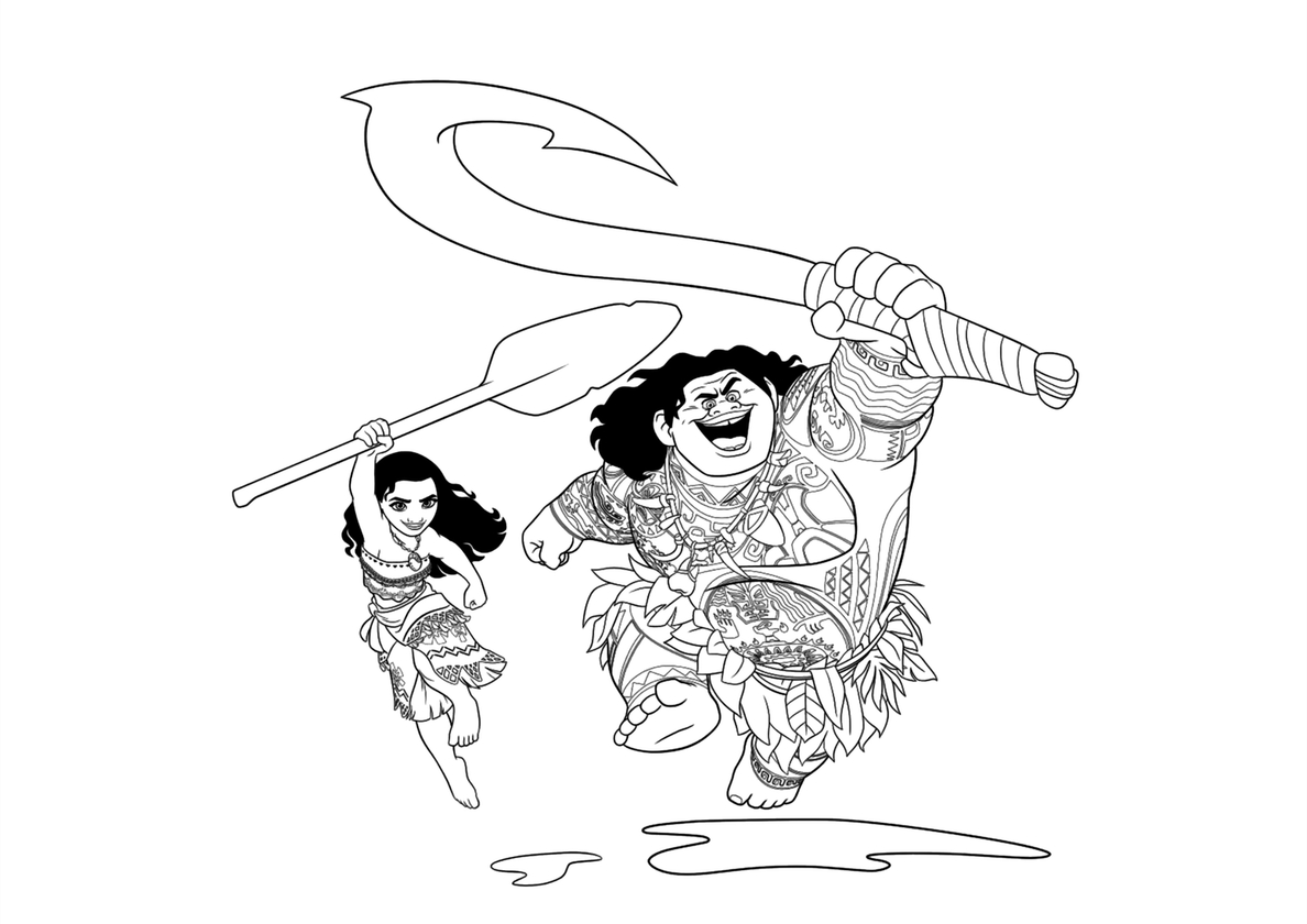 Смелые герои - Моана и Мауи (Моана) распечатать бесплатную раскраску Смелые герои — Моана и Мауи
