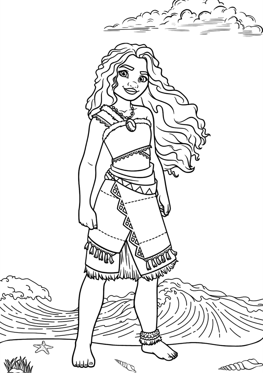 Отважная принцесса раскраска распечатать на А4 - Моана Отважная принцесса