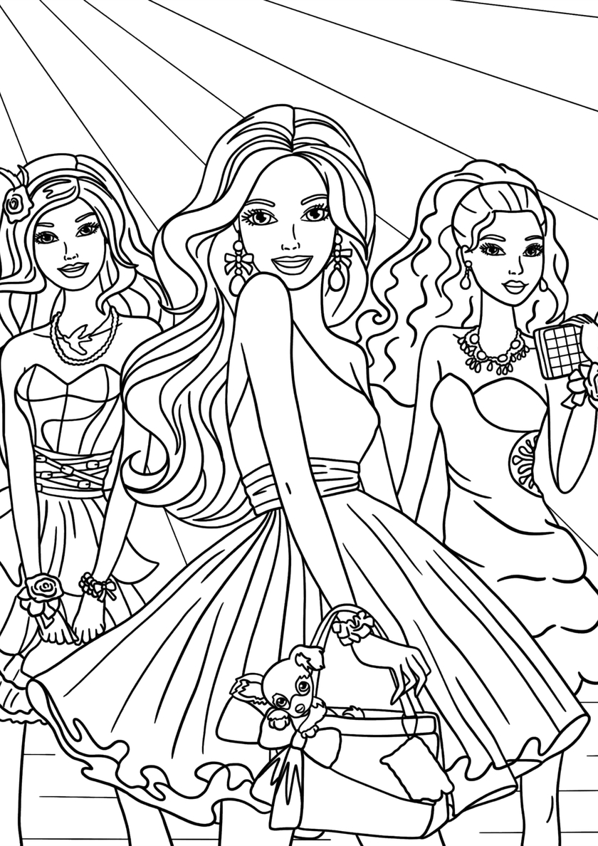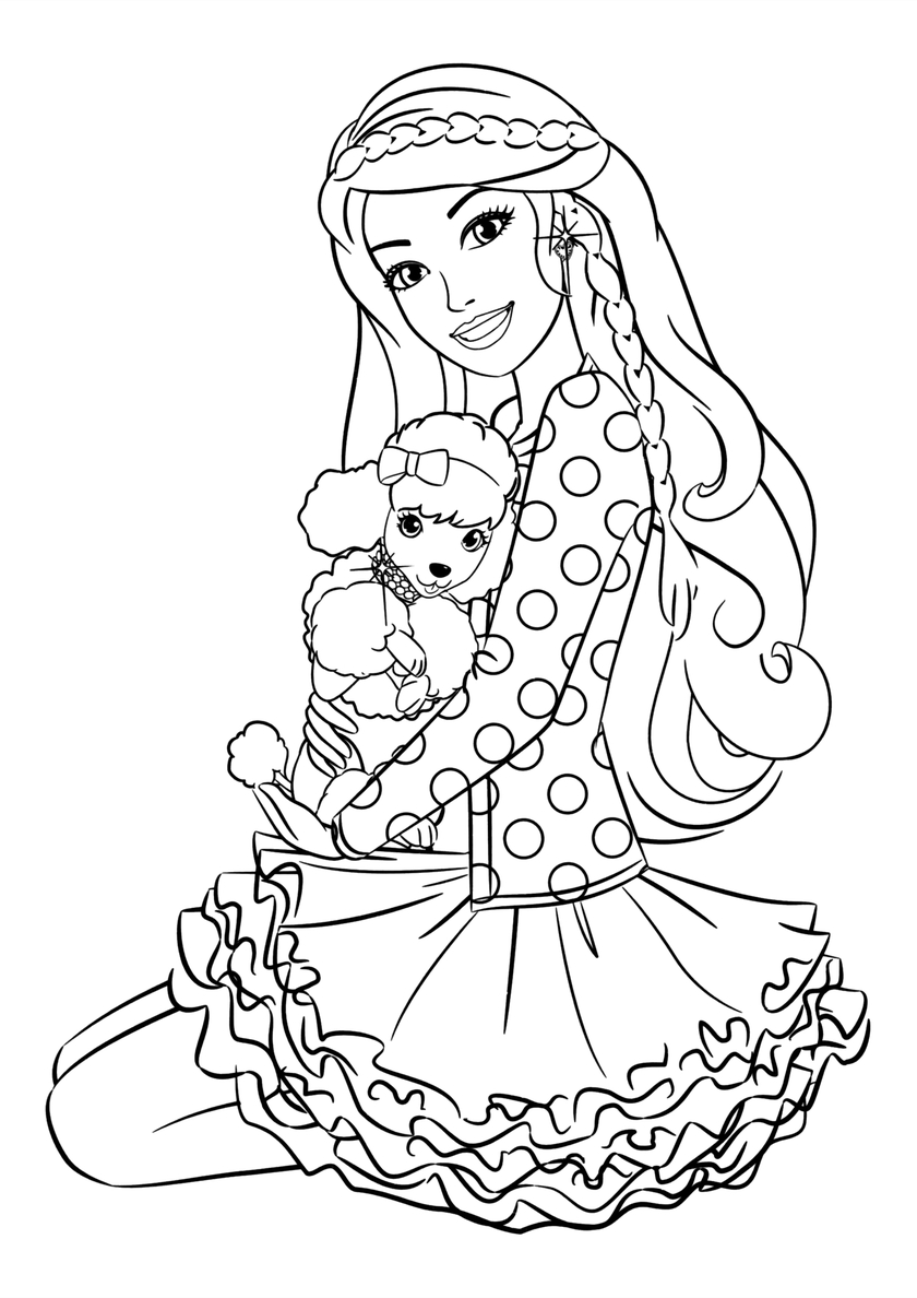Позднее знаменитая блондинка вышла далеко за рамки игрушечного мира: теперь она — главная героиня красочных мультфильмов и видеоигр. Ребята с упоением смотрят сюжеты о прекрасных принцессах, феях, колдуньях, единорогах и говорящих питомцах. Распечатайте на листах А4 лучшие бесплатные раскраски кукол «Барби», чтобы порадовать маленьких модниц!