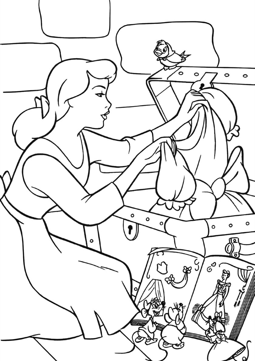 Процесс раскрашивания сильно зависит от ситуации, в которой героиня изображена на картинке-раскраске. Например, когда девушка отправляется на королевский бал, она одета в яркое пышное платье! При этом, выполняя работу по дому, Золушка выглядит немного неряшливо в жалких лохмотьях, выделенных злой мачехой.