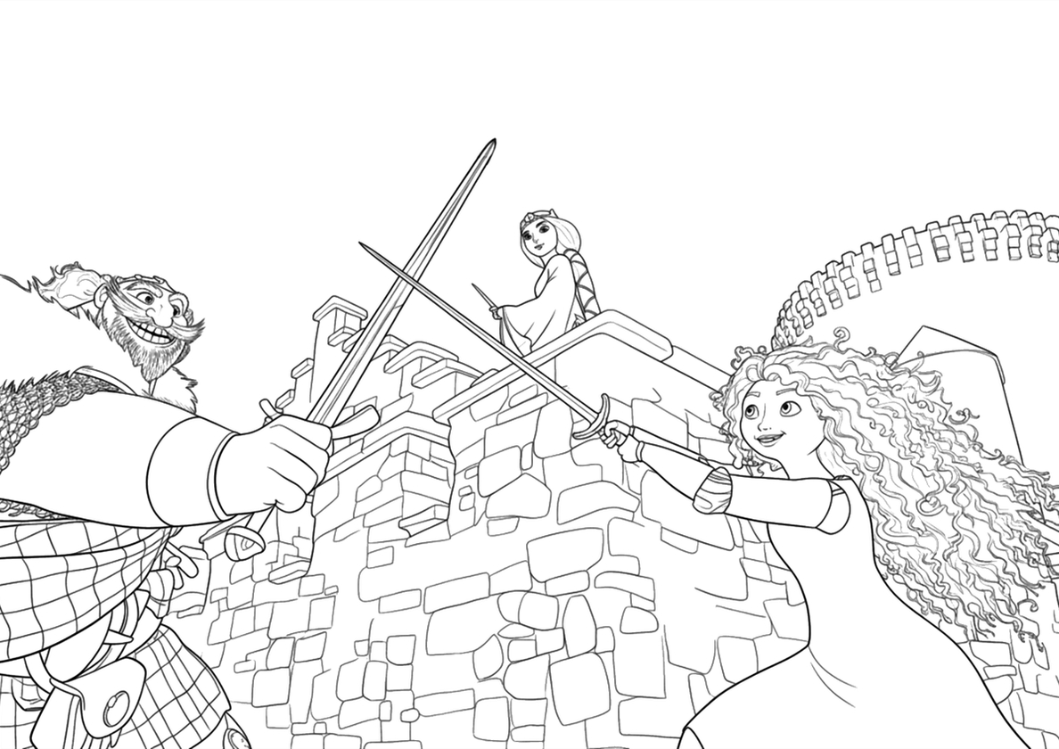 Тренировка с мечом (Мерида) бесплатная раскраска Тренировка с мечом