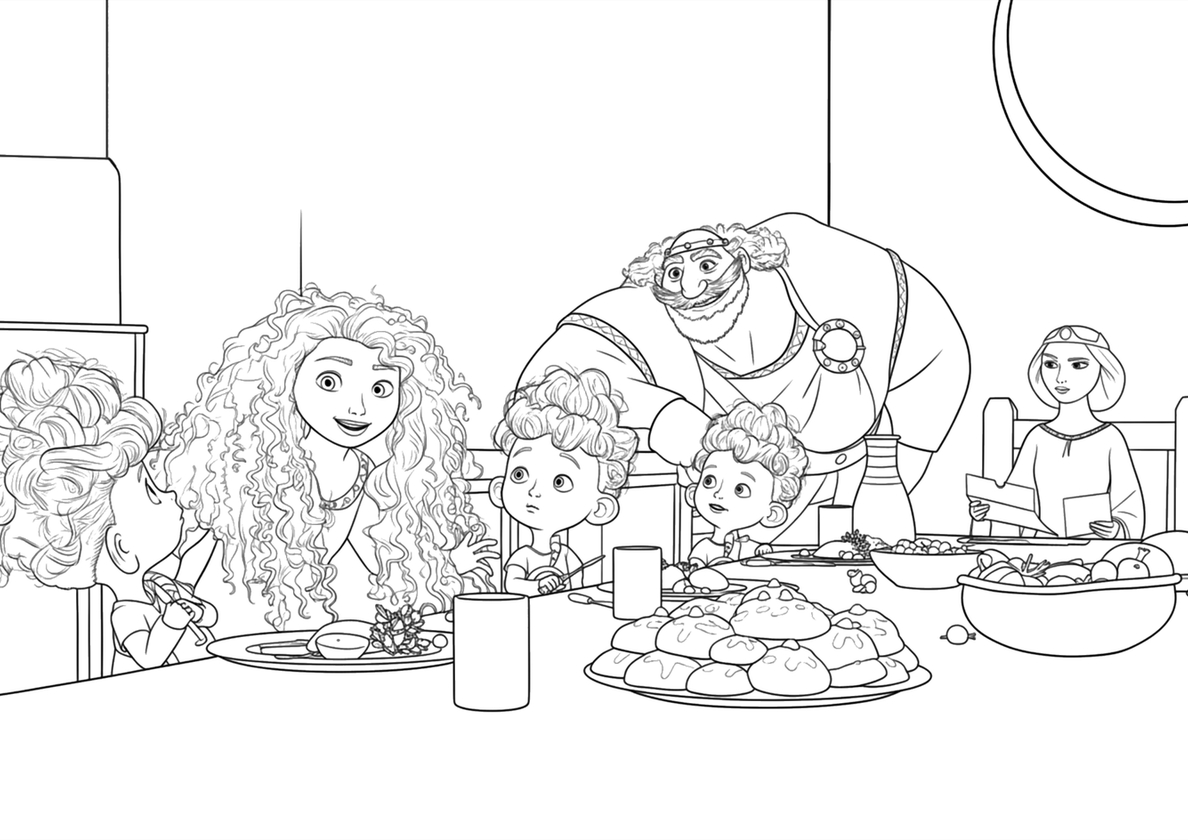 Бесплатная раскраска Семейный ужин - Мерида Семейный ужин