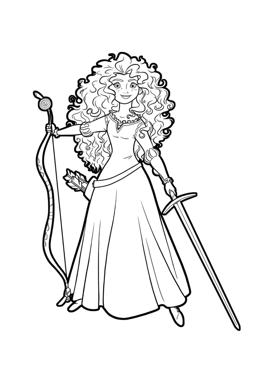 Бесплатная раскраска Мерида и её любимое оружие распечатать и скачать - Мерида Мерида и её любимое оружие