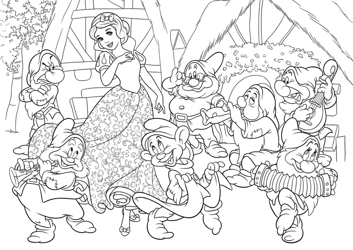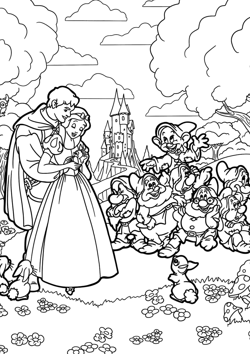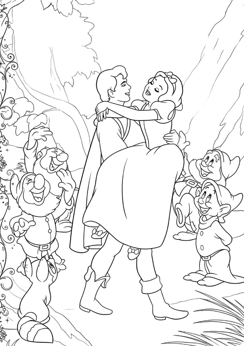 Знакомая каждому история, не так ли? На этой странице собраны самые интересные раскраски Белоснежки, её возлюбленного и гномов. Расскажите сказку детям младшего дошкольного возраста во время раскрашивания, чтобы подогреть их интерес и ближе познакомить с героиней. На нашем сайте есть также бесплатные раскраски по другому популярному мультфильму Disney: «Холодное сердце«, настоятельно рекомендуем обратить на них внимание!