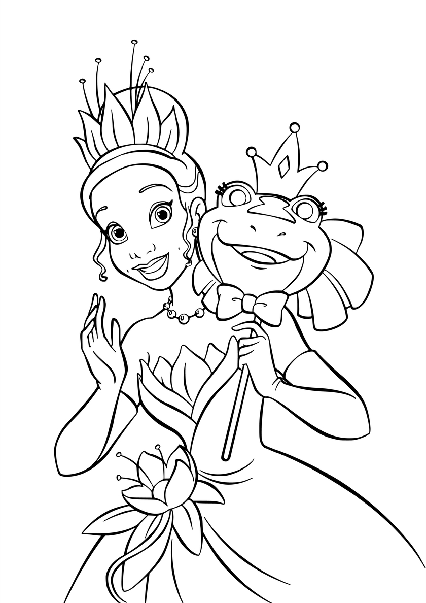 Бесплатная раскраска Принцесса и лягушка распечатать и скачать - Тиана Принцесса и лягушка
