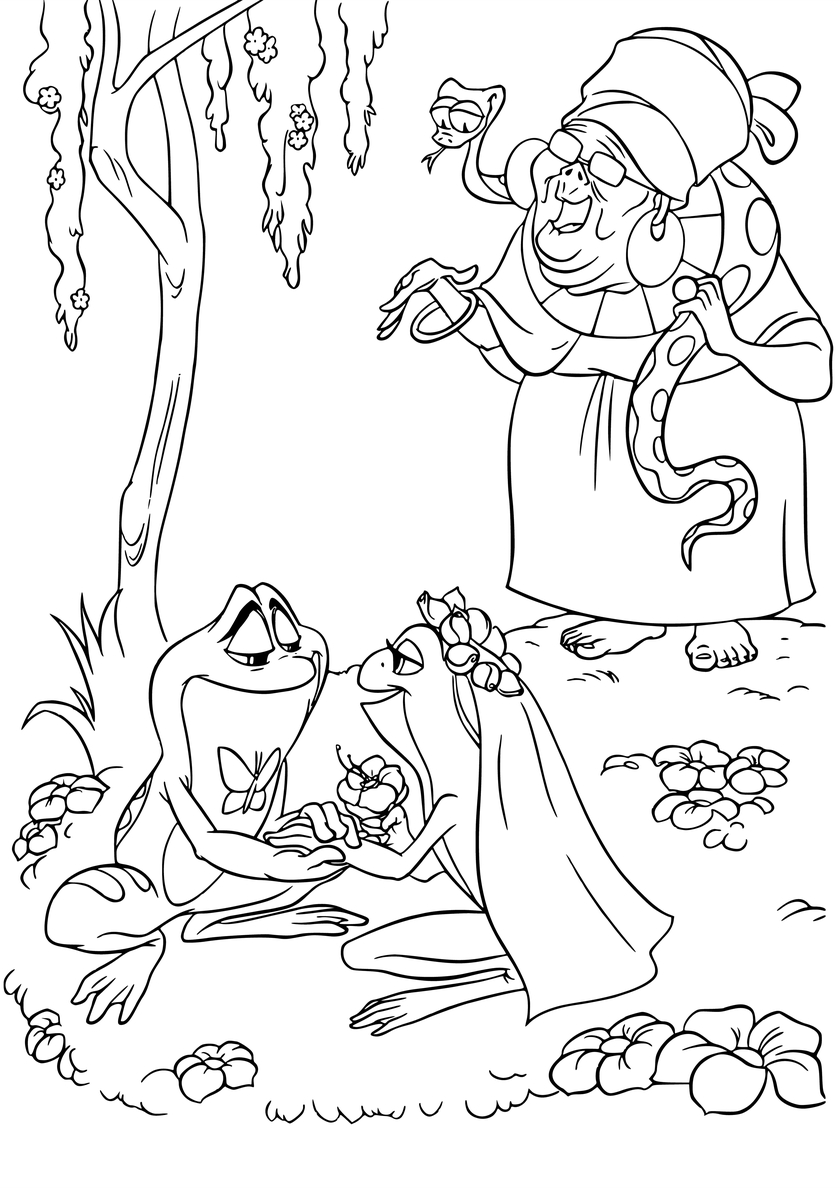 Раскраска Счастливая лягушачья пара распечатать на А4 и скачать - Тиана Счастливая лягушачья пара