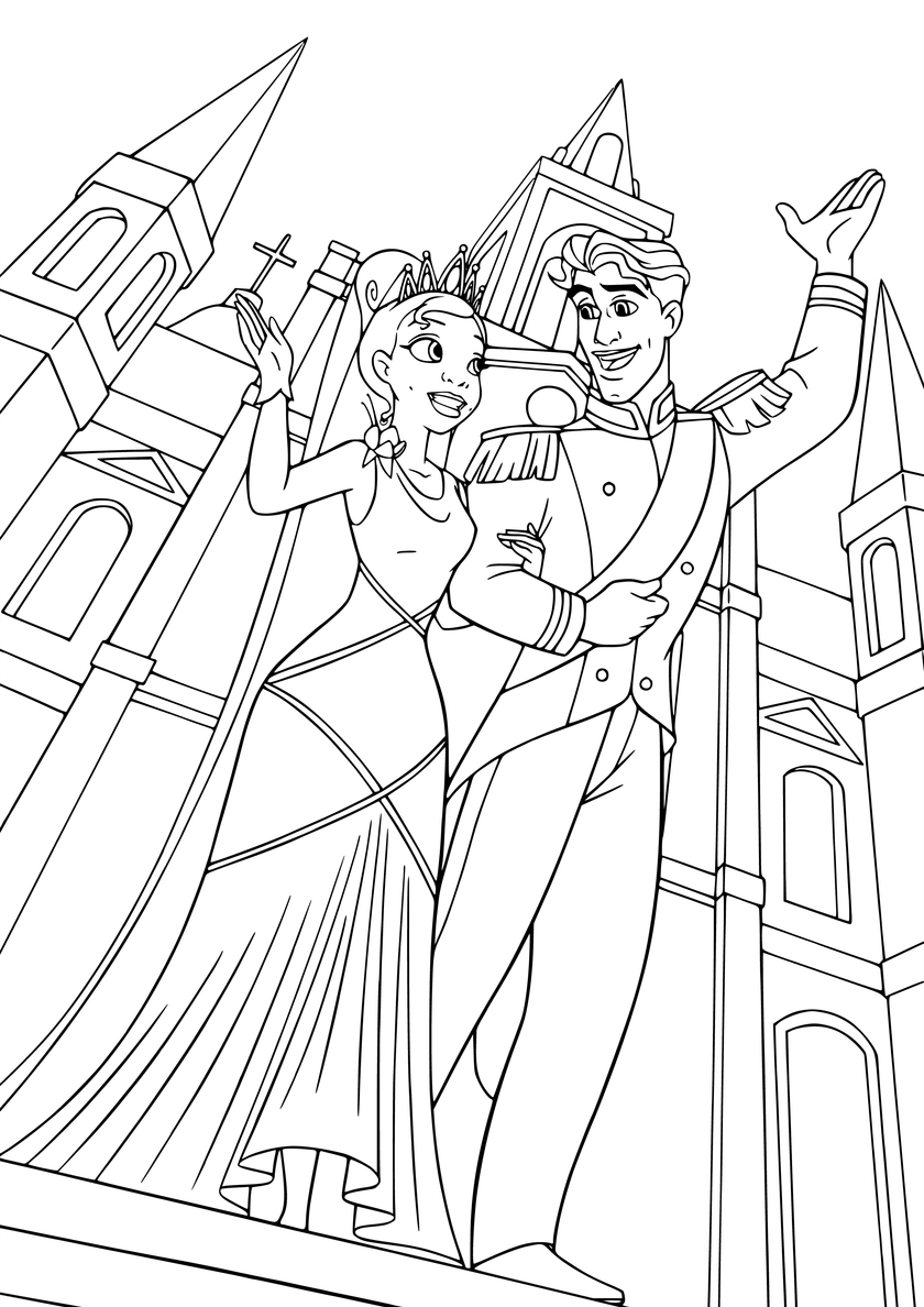 Тиана бесплатная раскраска распечатать на А4 - Тиана и принц Навин Тиана и принц Навин