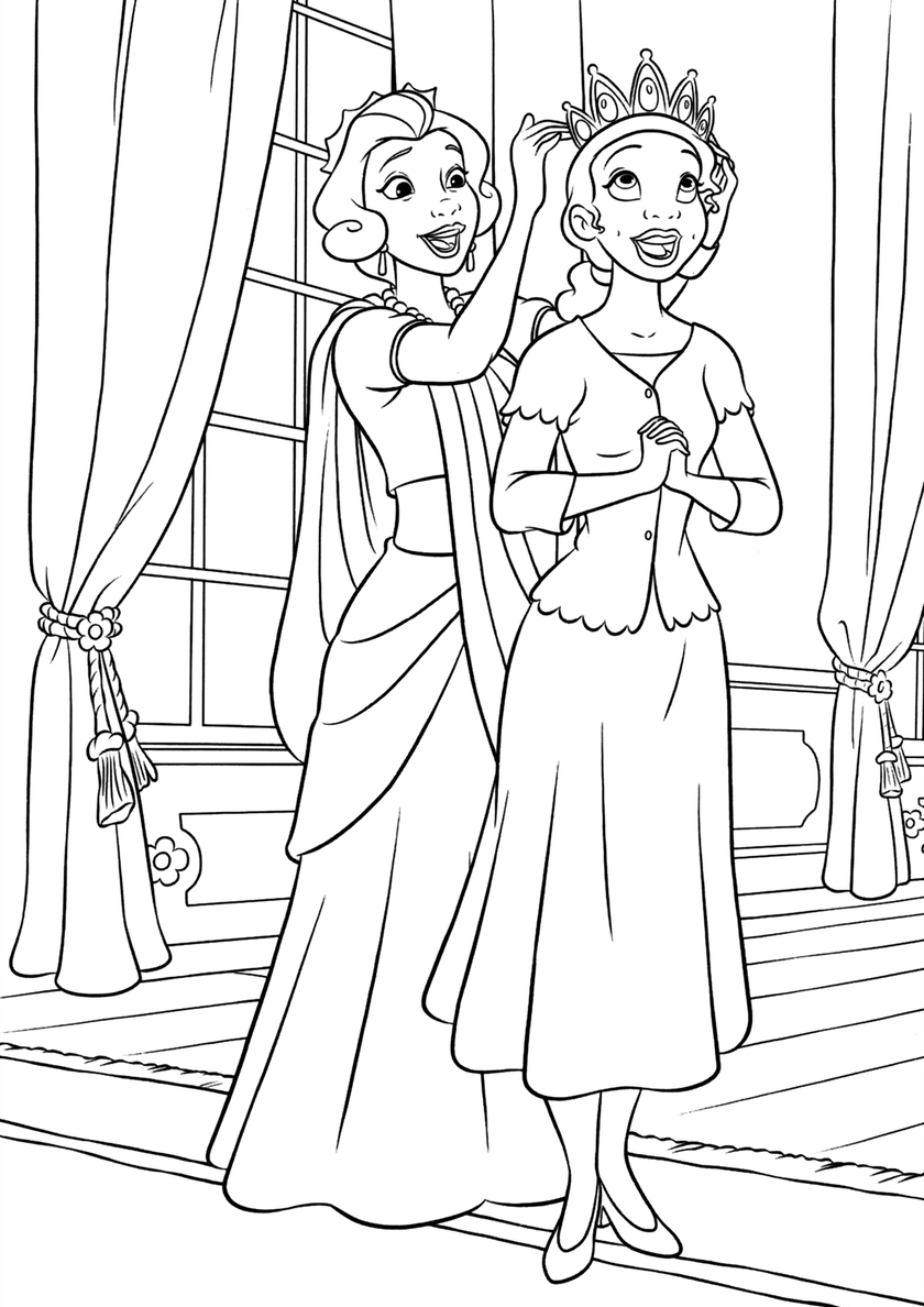 Распечатать раскраску Тиана примеряет диадему - Тиана Тиана примеряет диадему