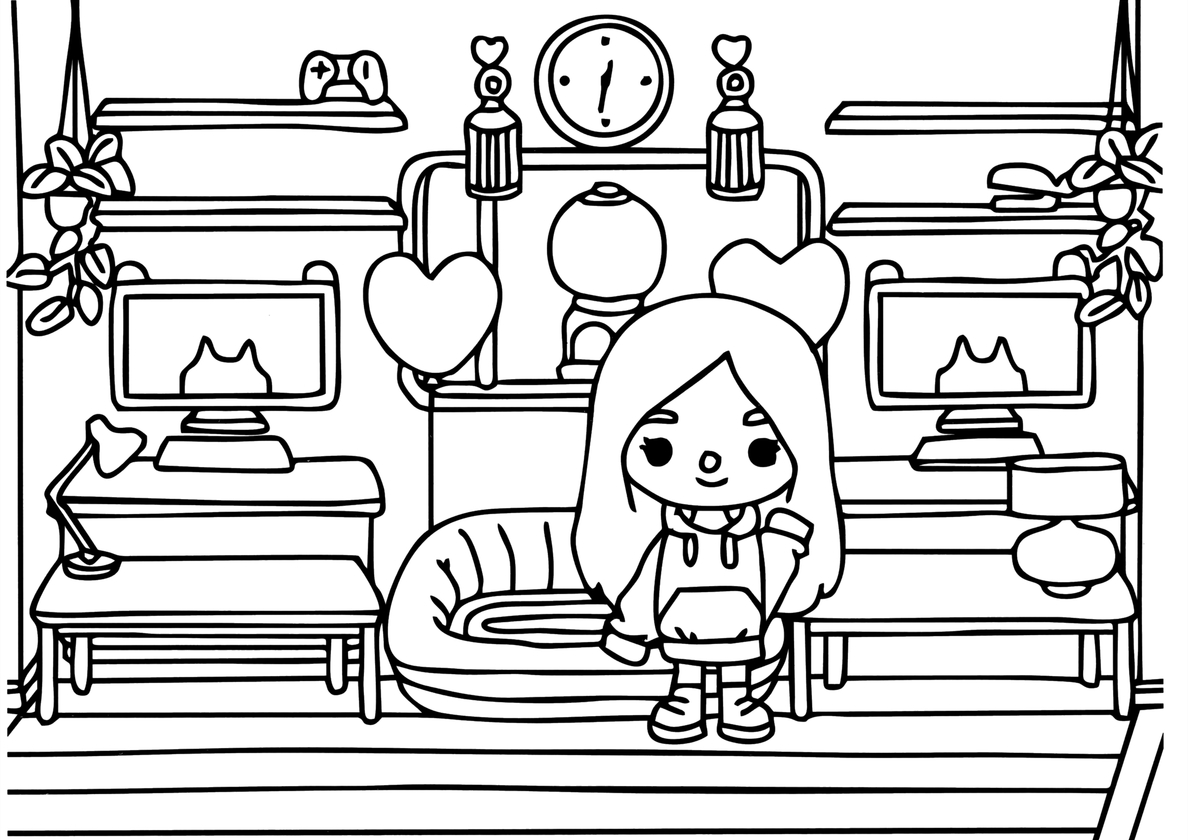 Девочка в гостиной (Тока Бока) раскраска для печати и загрузки Девочка в гостиной