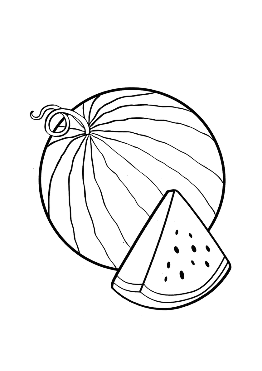Арбуз и его кусочек раскраска распечатать бесплатно на А4 - Арбуз Арбуз и его кусочек