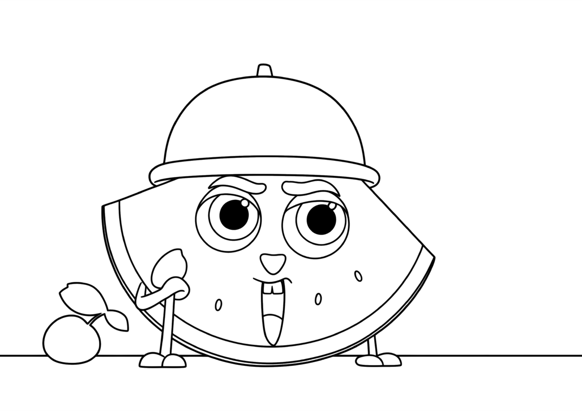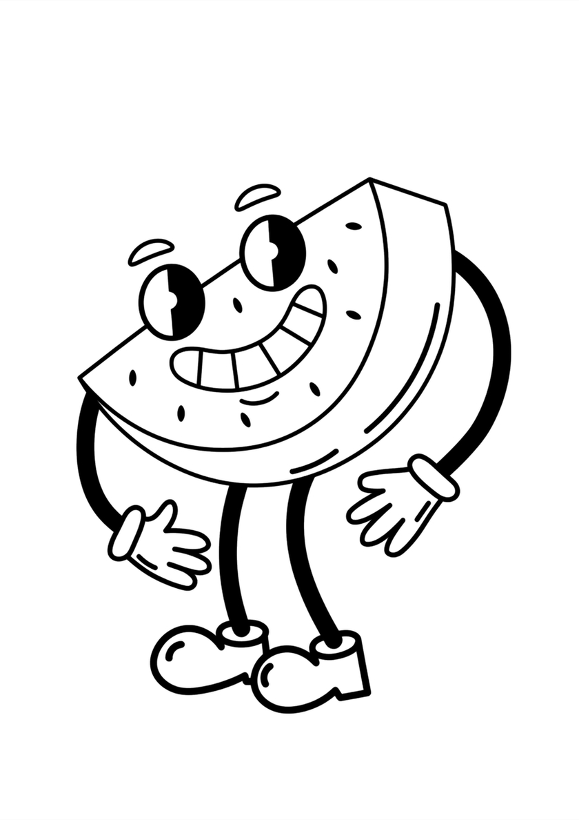 Счастливый Арбузный кусочек - раскраска персонажа распечатать на А4 и скачать бесплатно Счастливый Арбузный кусочек