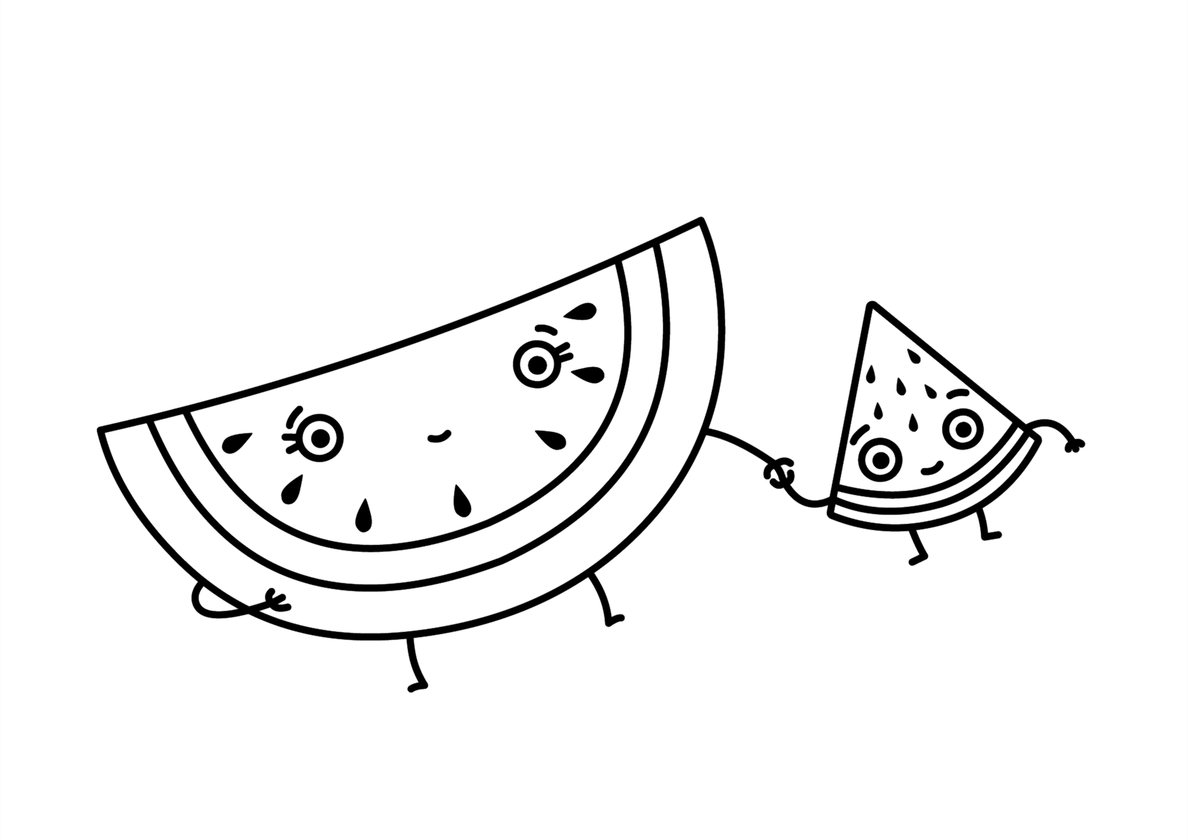 Счастливая долька арбуза - бесплатная раскраска для печати на А4 Счастливая долька арбуза