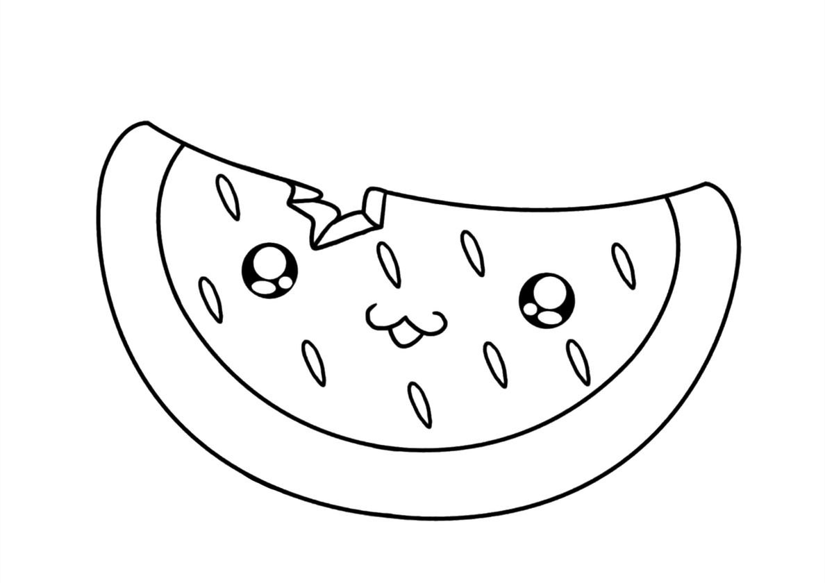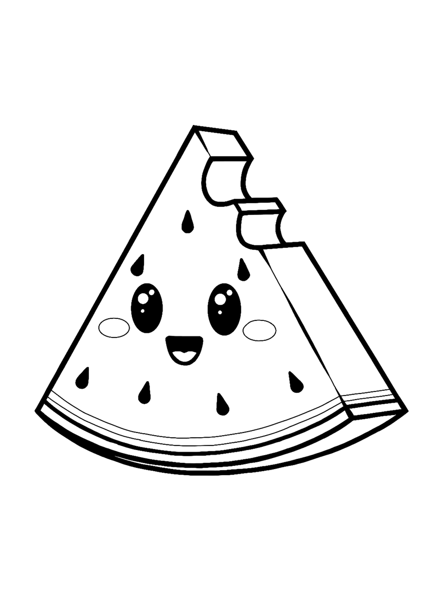 Распечатать раскраску Кавайная арбузная долька - Арбуз Кавайная арбузная долька