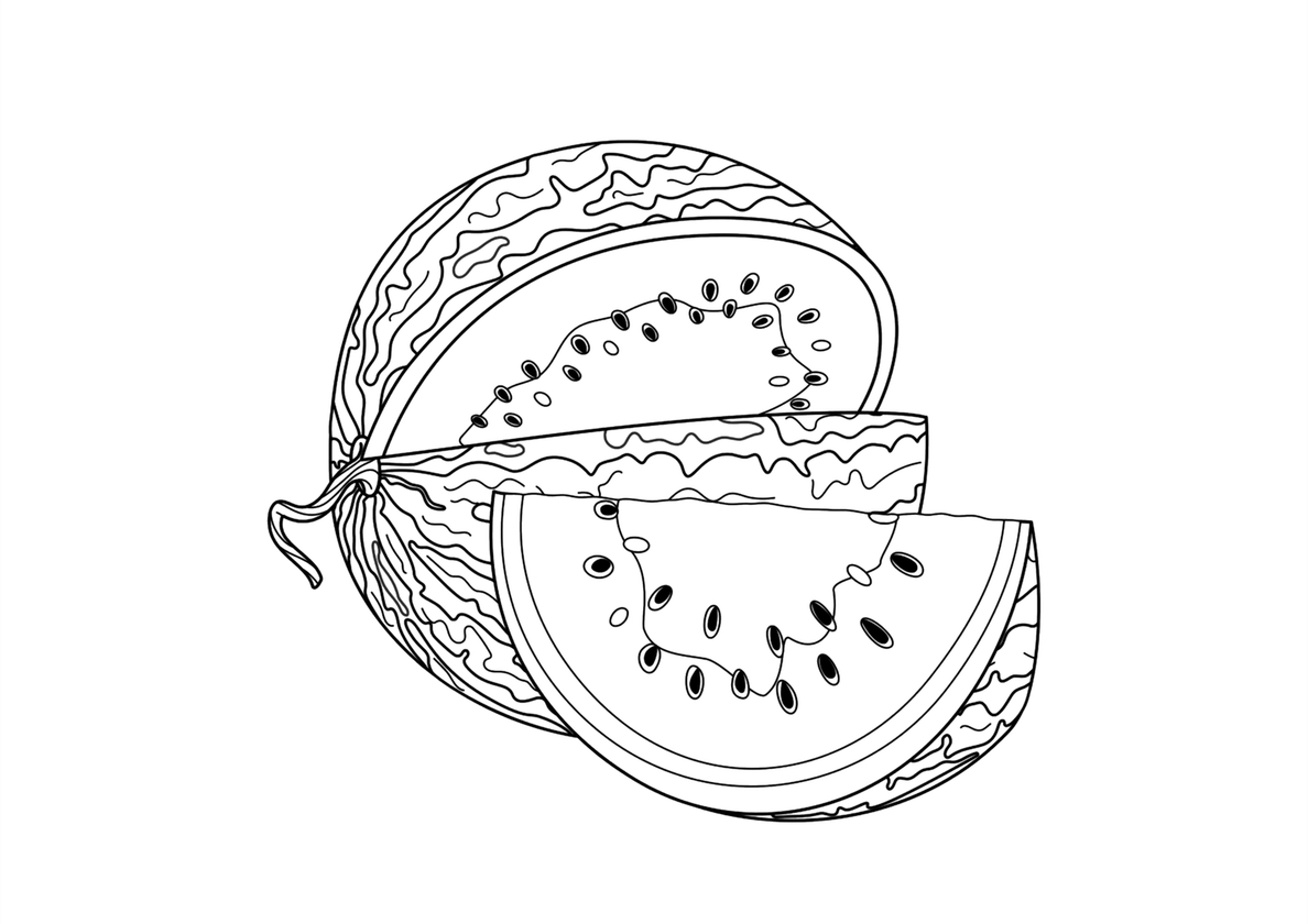 Разукрашка Нарезанный арбуз распечатать на А4 и скачать - Арбуз Нарезанный арбуз