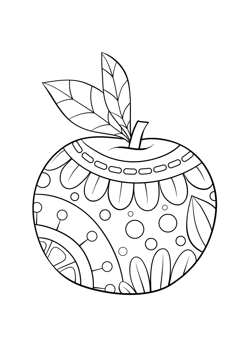 Антистресс яблоко с узорами - Яблоко распечатать раскраску на А4 Антистресс яблоко с узорами