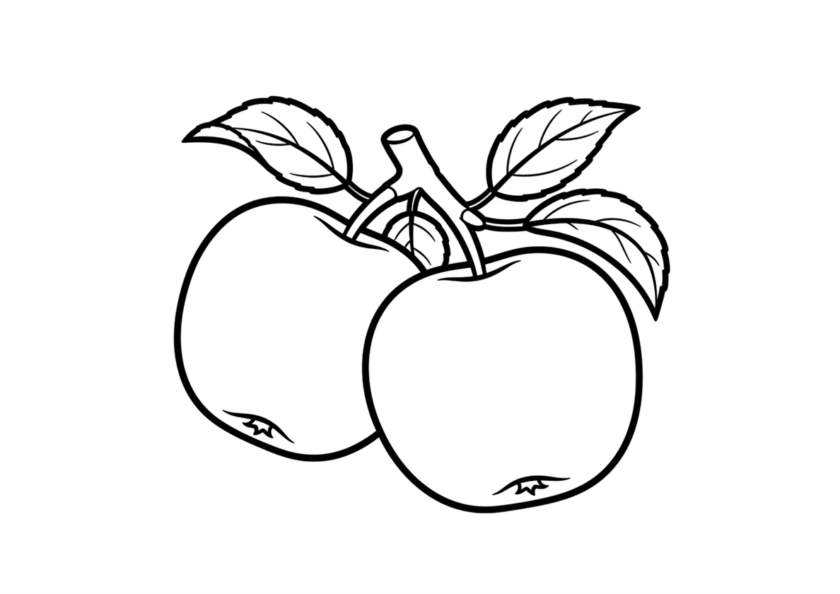 Два спелых яблочка - Яблоко бесплатная раскраска Два спелых яблочка