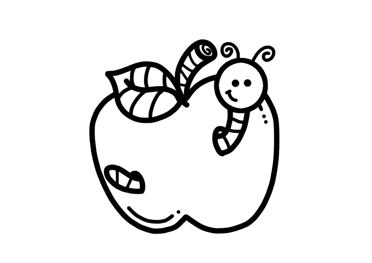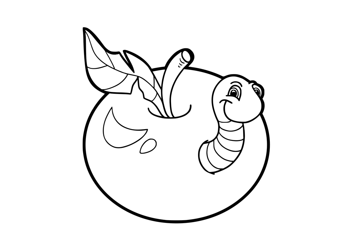 Бесплатная раскраска Ужин веселого червяка - Яблоко Ужин веселого червяка
