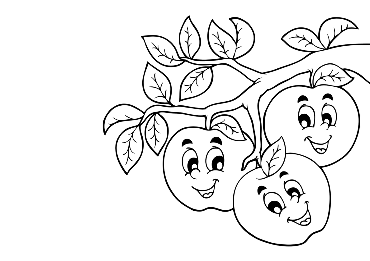 Улыбчивые яблочки на ветке (Яблоко) бесплатная раскраска Улыбчивые яблочки на ветке