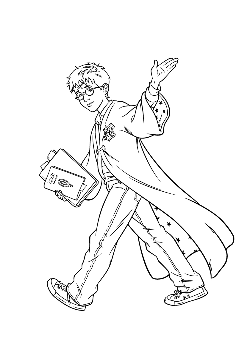 Гарри Поттер спешит на занятия раскраска распечатать и скачать - Гарри Поттер Гарри Поттер спешит на занятия