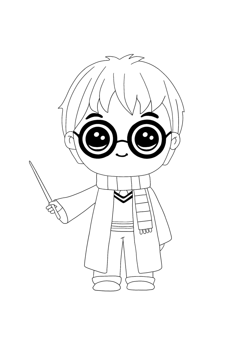 Милый рисунок Гарри Поттера (Гарри Поттер) бесплатная раскраска на печать Милый рисунок Гарри Поттера