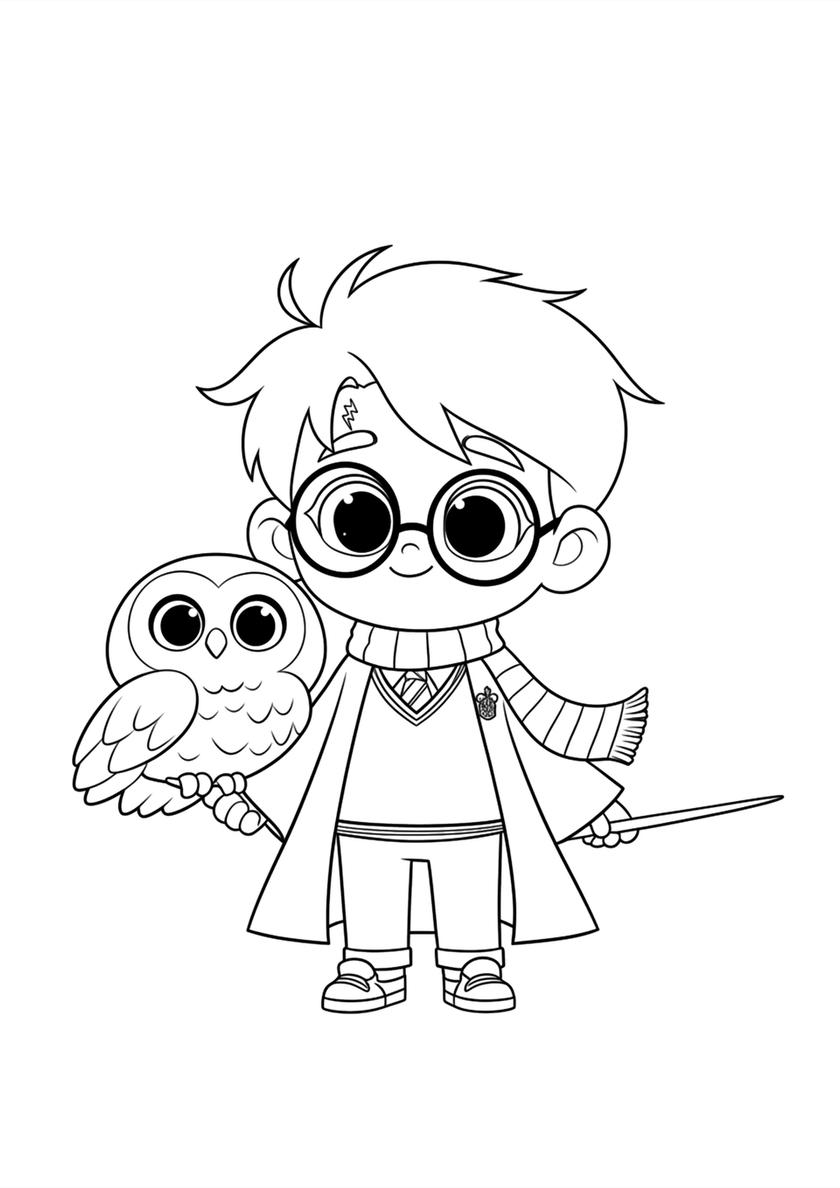 Милый волшебник (Гарри Поттер) разукрашка для печати на А4 Милый волшебник